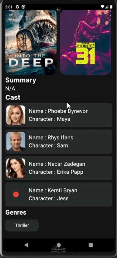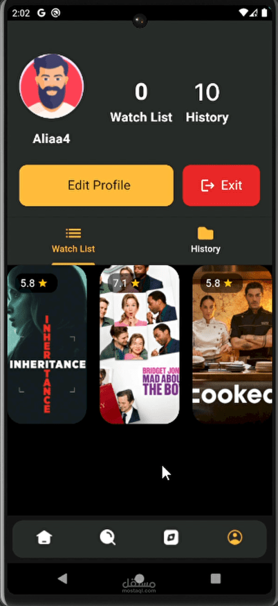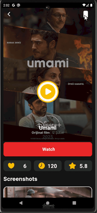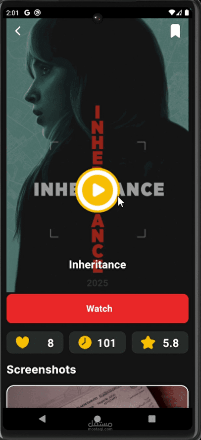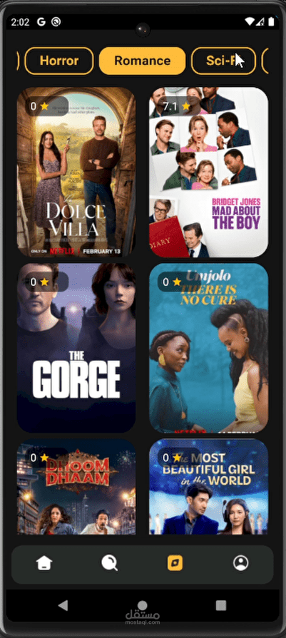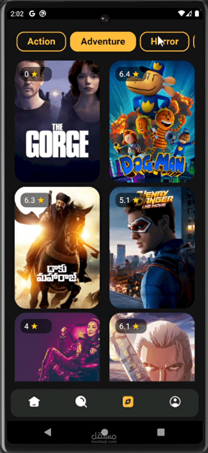 تطبيق موبايل متكامل لتصفح الأفلام تم تطويره باستخدام Flutter، يتيح للمستخدمين استكشاف الأفلام حسب النوع، البحث عن العناوين، وإدارة قائمة المشاهدة الخاصة بهم بسهولة.