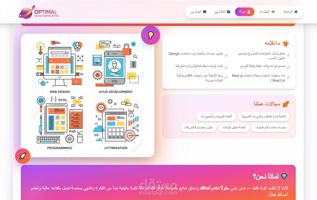 هذا المشروع عبارة عن Portfolio شخصي تم تطويره باستخدام Next.js لعرض المهارات، المشاريع، والخبرات بشكل احترافي وسريع الاستجابة. تم رفع المشروع على Vercel لضمان أداء عالي، سرعة تحميل ممتازة، واستقرار في النشر.