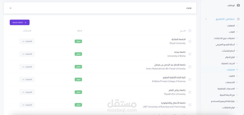 وتم برمجة لوحة تحكم كاملة للتحكم بالاعلانات والدورات والباحثين والشركات والمدونة وتأكيد الاشتراكات للباحثين والشركات وتم عرض تقارير بكافة العوائد المالية من الاشتراكات والباقات