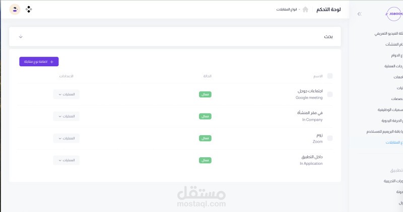 وتم برمجة لوحة تحكم كاملة للتحكم بالاعلانات والدورات والباحثين والشركات والمدونة وتأكيد الاشتراكات للباحثين والشركات وتم عرض تقارير بكافة العوائد المالية من الاشتراكات والباقات تطبيق جوب بوك هو لتسهيل ع الباحثين الحصول على العمل ونشر السير الذاتيه لدى الشركات الباحثة عن العمل وتلقي أفضل العروض الوظيفية من خلال التطبيق ، ويتم توفير العديد من الخواص للباحث مثل حجب بعض المعلومات الشخصية عن الشركات كما يمكنه الاشتراك ضمن خطه حساب البريميوم.