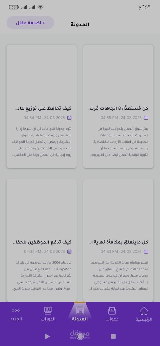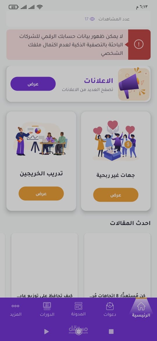 ويوفر التطبيق العديد من المميزات كالدورات التعليمية والمدونات التي تم اضافتها من قبل الادارة.
