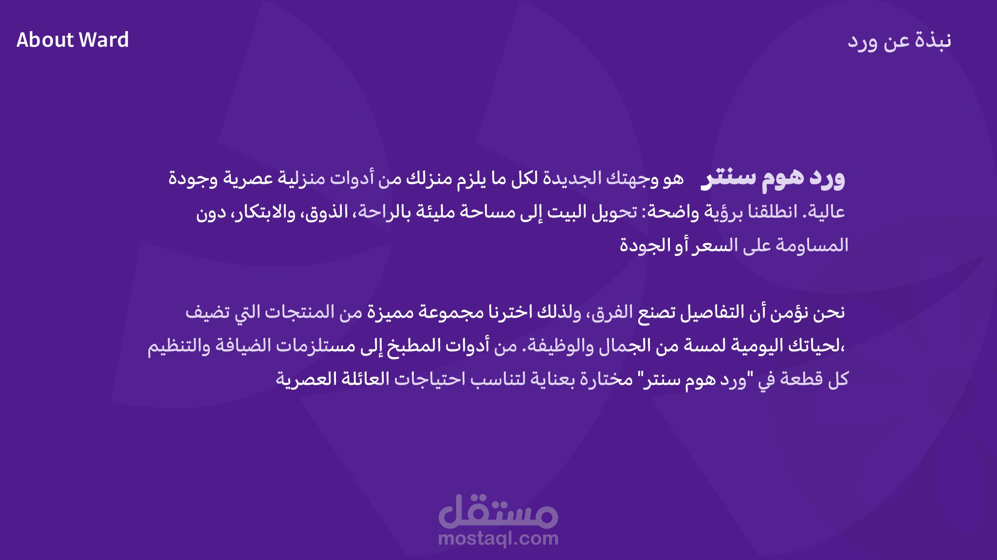 مشروع Ward Branding هو تصميم هوية بصرية متكاملة تم إنشاءه لإعطاء علامة أيقونية وجذّابة حضورًا بصريًا قويًا ومميّزًا في السوق. المشروع يشمل: