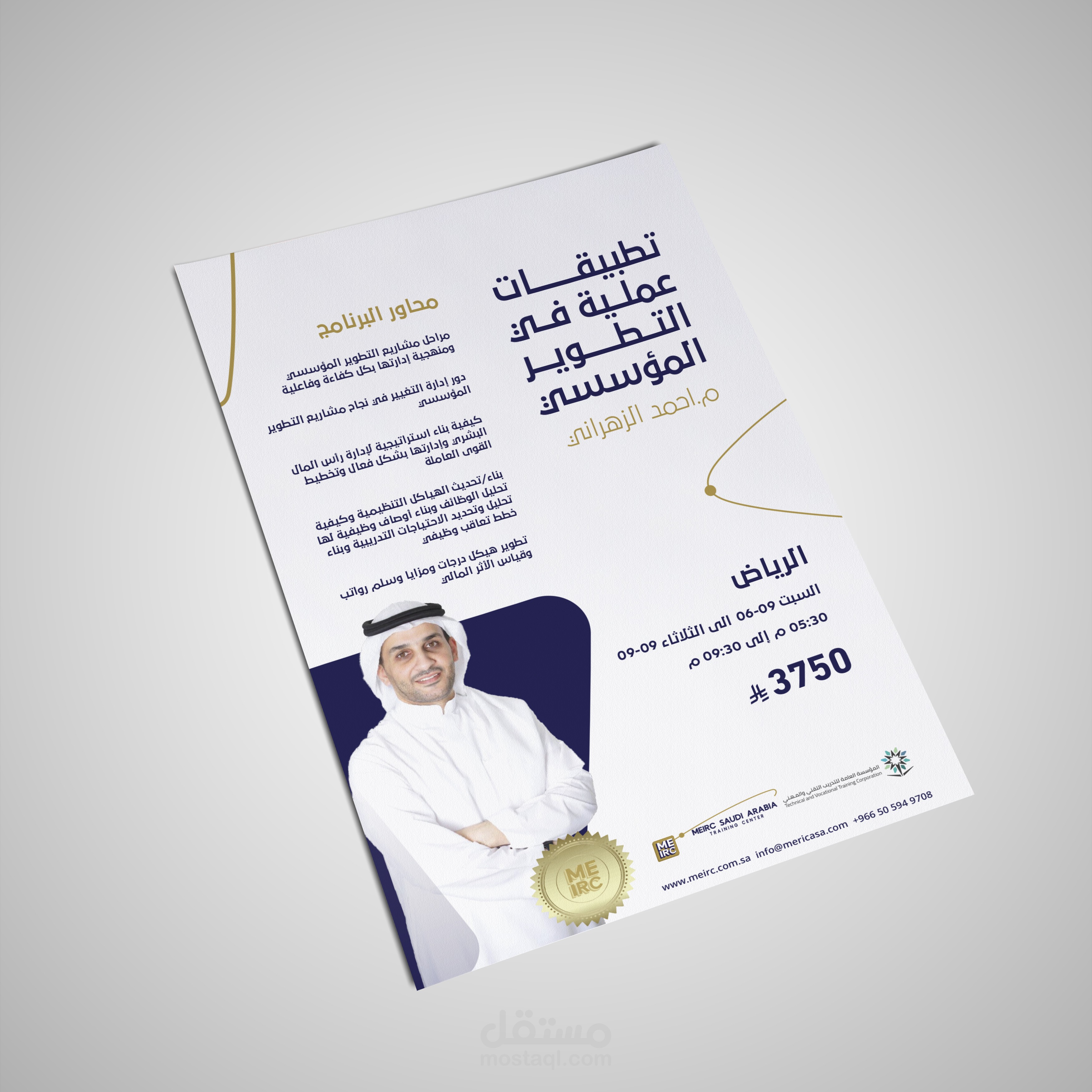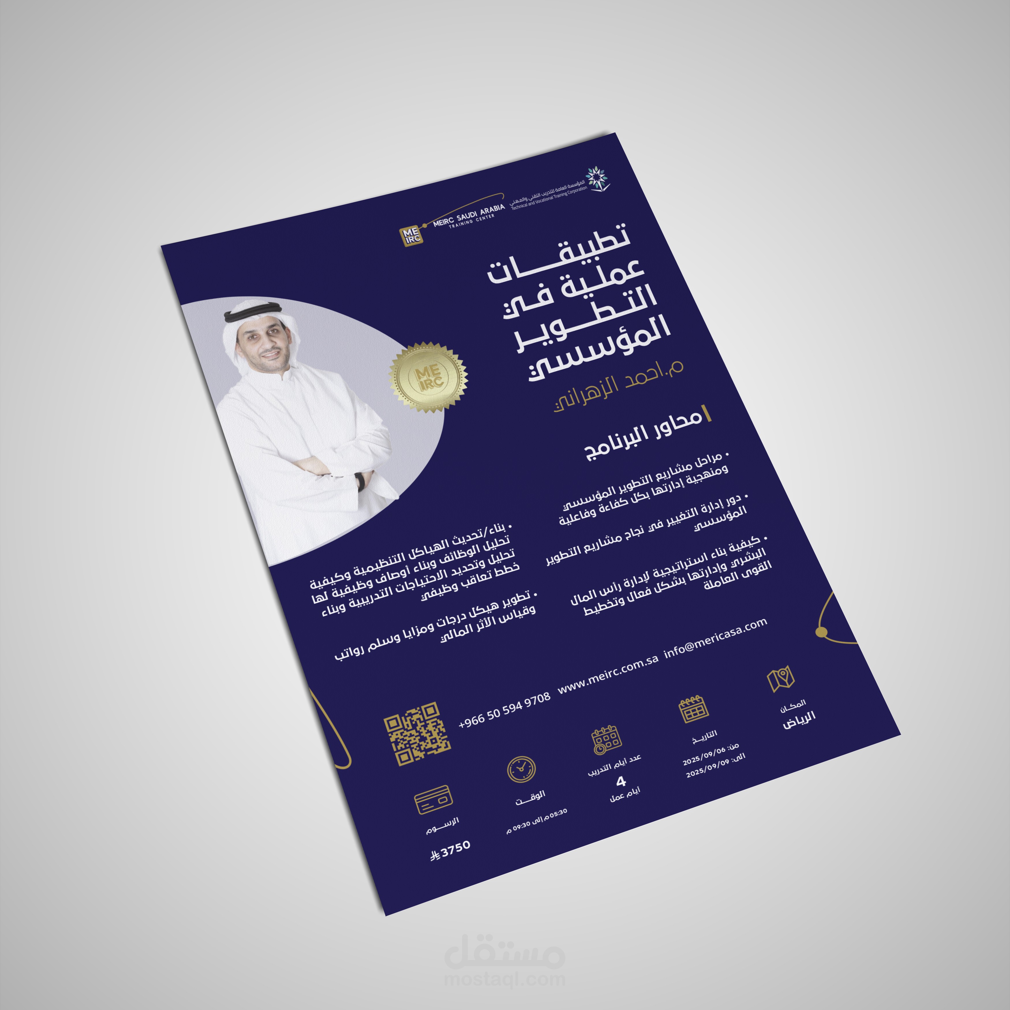 مشروع MEIRC Saudi Arabia Training Center هو تصميم بصري شامل يقدّم هوية مرئية وتصاميم تسويقية متكاملة لمركز تدريب MEIRC في السعودية، وهو أحد أبرز مقدمي خدمات التدريب والاستشارات المهنية في المنطقة منذ أكثر من 60 عامًا.