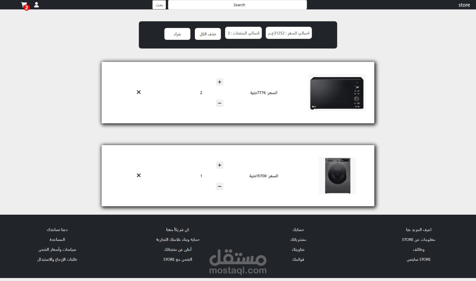 والأجهزة الكهربائية والمنزلية والهواتف وملابس الرجال والأطفال وخدمات متعددة والموقع مصمم باستخدام html ,css, JavaScript, bootstrap, Reactjs, nodejs, express, mongo, mongoose والموقع مصمم بشكل احترافي ومتجاوب مع جميع الشاشات ولوحة تحكم لإدارة المنتجات