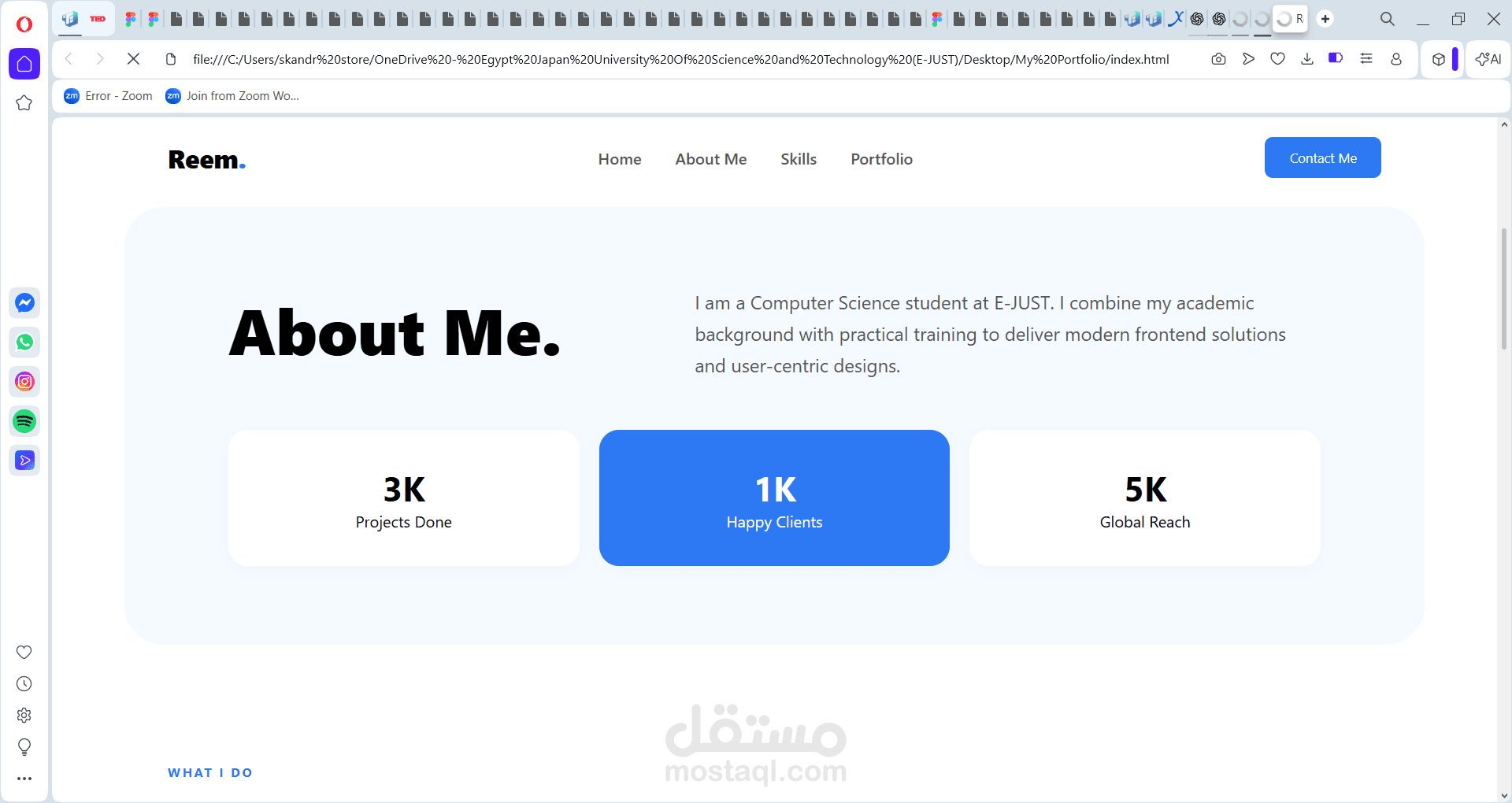 "A professional personal portfolio website designed to showcase my web development skills, projects, and technical journey. The site features a clean, modern layout with a focus on smooth navigation and readability.