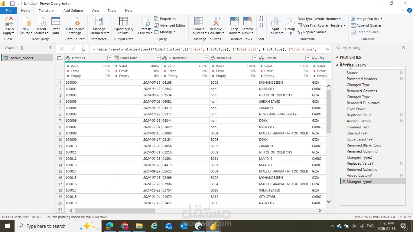 كما تم تطبيق أساليب Data Cleaning وData Preparation لضمان دقة النتائج وسهولة استخدام البيانات في Dashboards وتحليلات الأعمال.