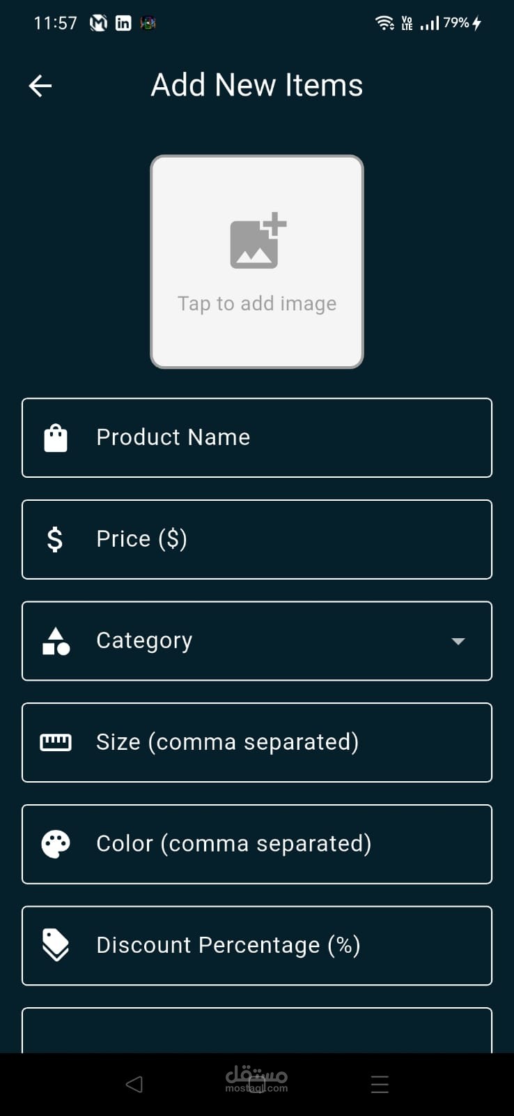 رفع الصور: اختيار ورفع صور المنتجات مباشرة من معرض الصور بالهاتف.