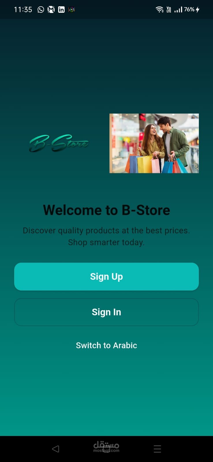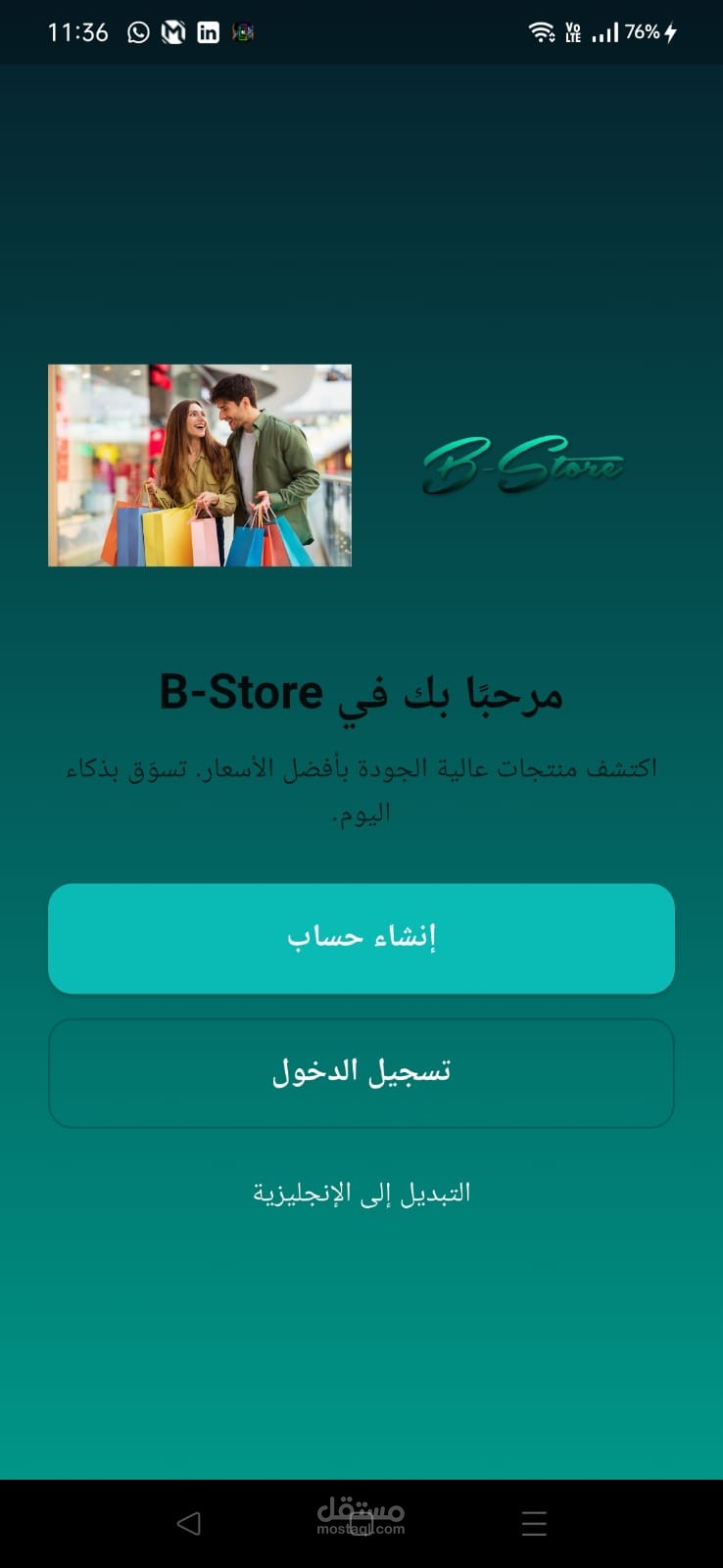 B-Store هو تطبيق تسوق شامل يوفر تجربة سلسة للمستخدمين مع أدوات إدارية قوية لأصحاب المتاجر. يتميز التطبيق بواجهة مستخدم عصرية وجذابة، مدعومة برسوم متحركة سلسة، ويدعم الوضعين الليلي والنهاري.