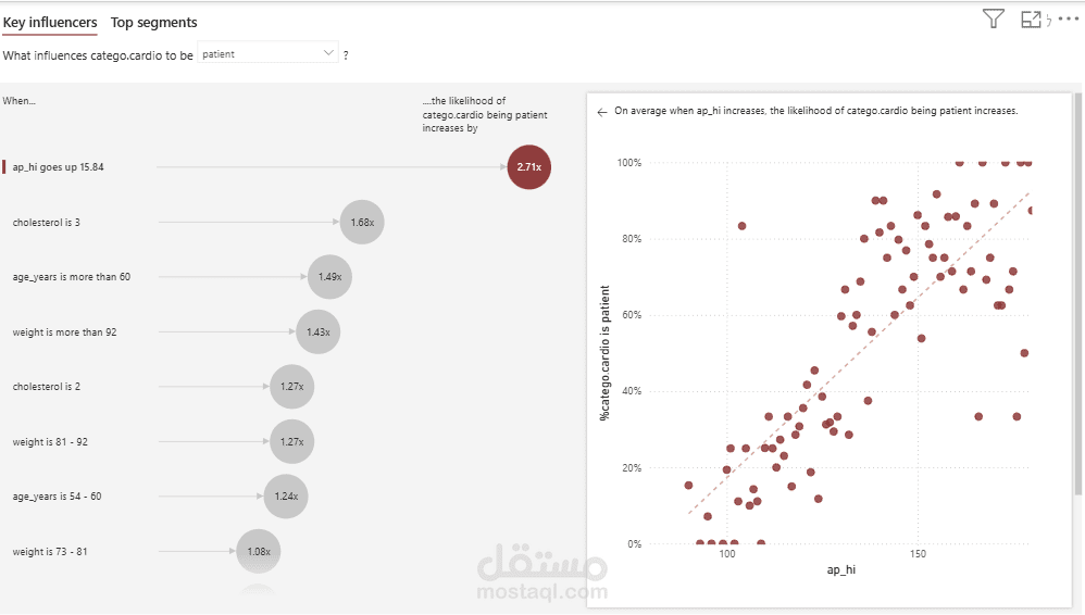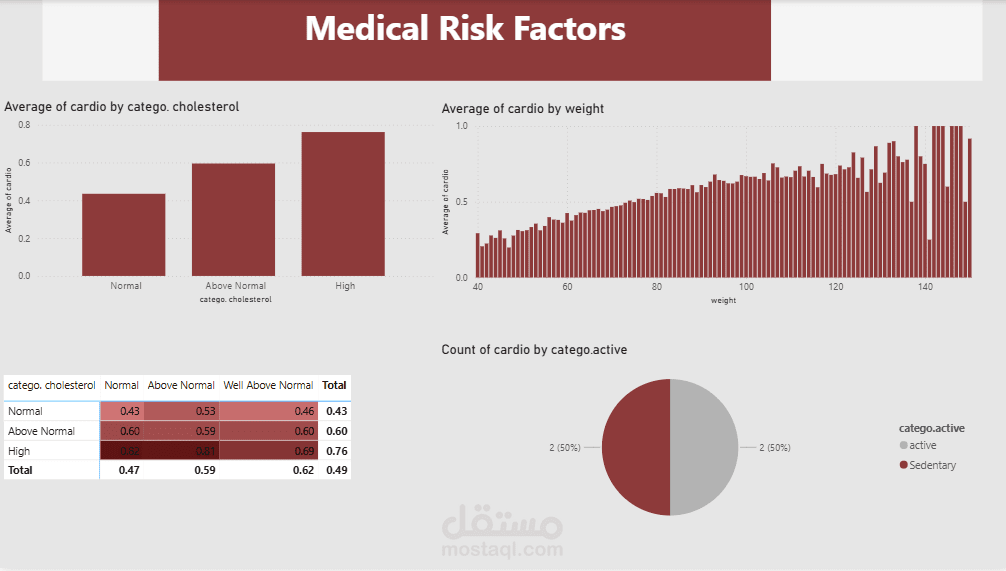 يركز هذا المشروع على تحليل بيانات المرضى لتحديد العوامل الرئيسية المرتبطة بأمراض القلب. الهدف هو اكتشاف الأنماط المخفية، كشف نقاط الخلل، وتسليط الضوء على المجموعات عالية المخاطر، مما يمكّن مقدمي الرعاية الصحية من اتخاذ قرارات مبنية على البيانات.