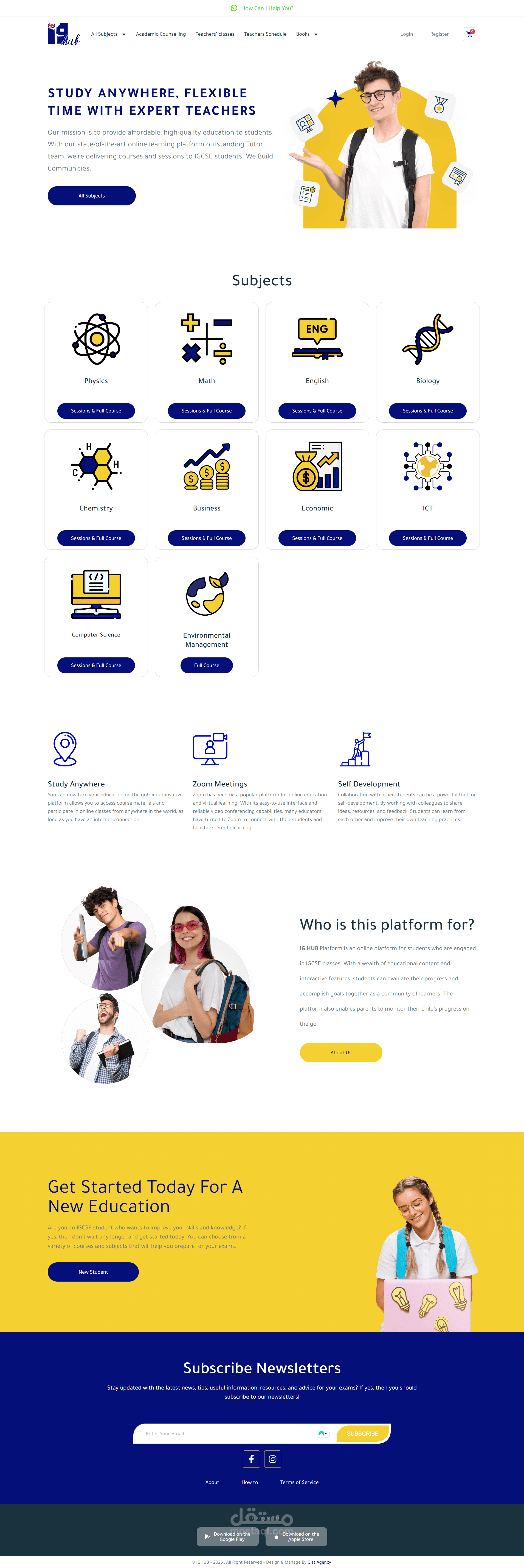 قمت بتنفيذ منصة IG Hub كحل تعليمي رقمي متكامل مخصص لطلاب IG، يتيح تقديم المناهج الدراسية في صورة سيشنز تعليمية مباشرة (حصص أونلاين / Zoom Meetings) بنظام اشتراكات مرن.