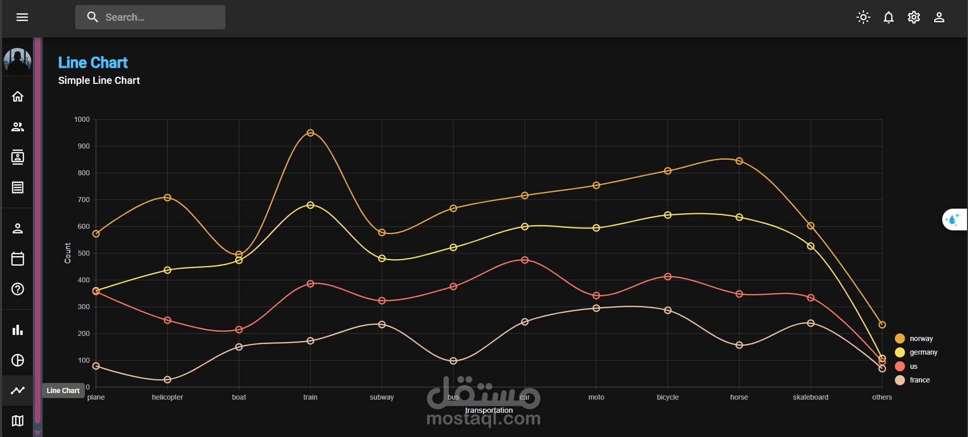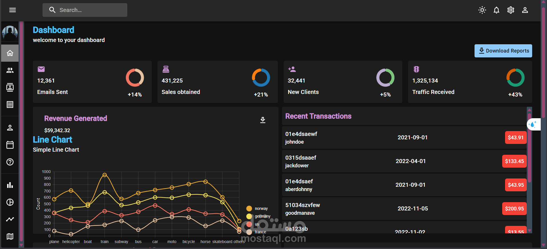 تحتوي لوحة التحكم على مخططات ورسوم بيانية تفاعلية (Charts) لعرض البيانات والإحصائيات، مثل: