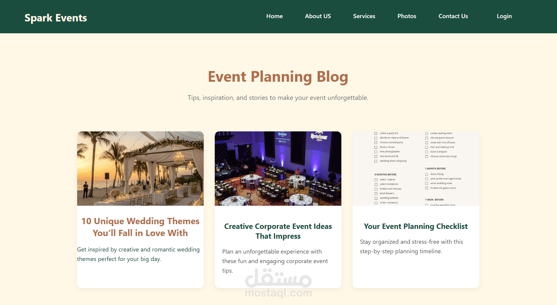 موقع ويب متخصص في تخطيط وإدارة الفعاليات والمناسبات مثل حفلات الزفاف، المؤتمرات، الحفلات الخاصة، أو المناسبات التجارية. يسمح للمستخدمين بتنظيم كل تفاصيل الحدث في مكان واحد، من حجز المكان إلى إدارة الدعوات والتنسيق مع الموردين.