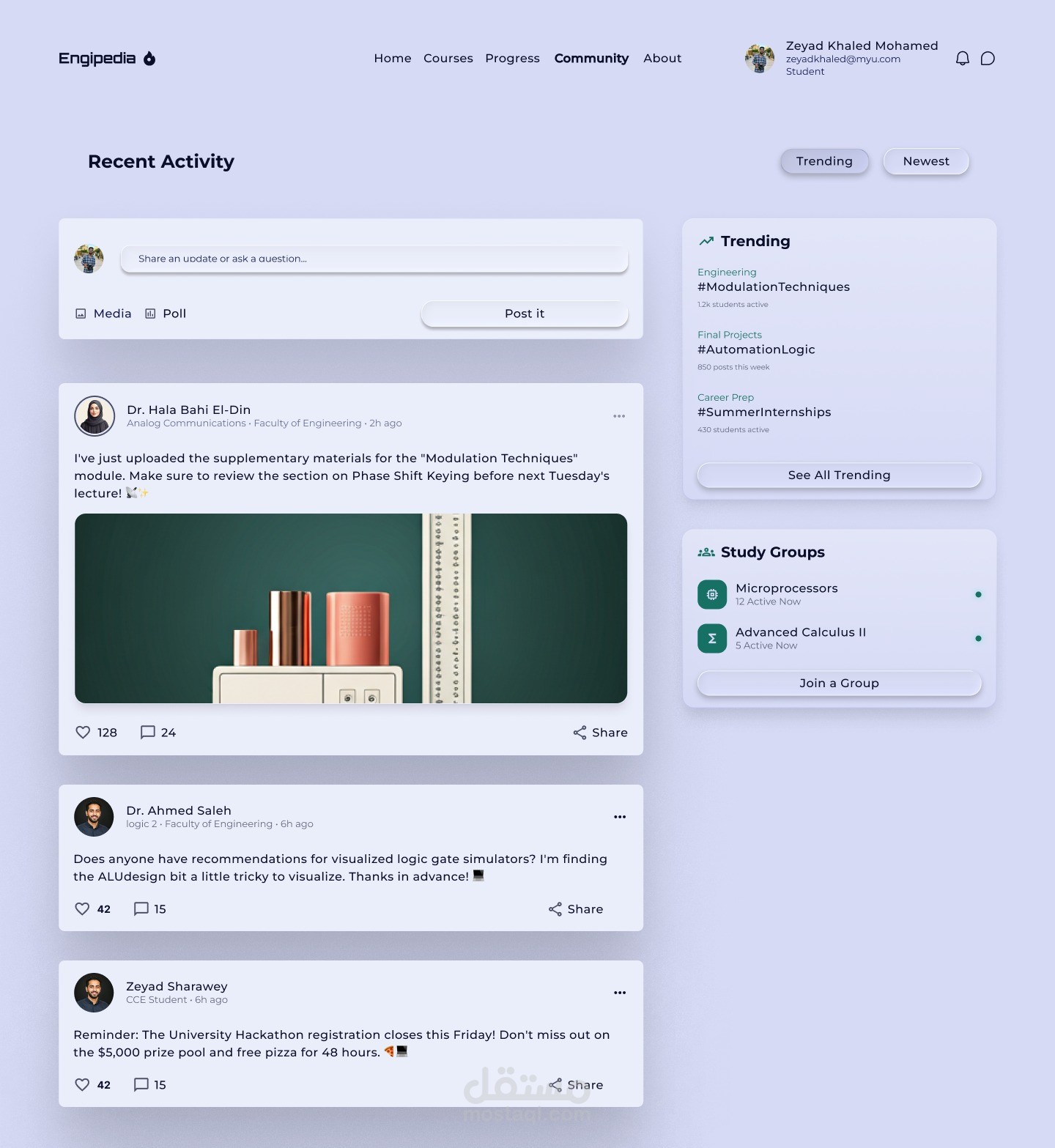"تعد إنجيبيديا (Engipedia) منصة رقمية تفاعلية رائدة، صُممت خصيصاً لتكون المرجع الأول والشامل لطلاب قسم هندسة الحاسبات والاتصالات (Computer and Communication Engineering). تهدف المنصة إلى تجميع كافة المصادر الدراسية من محاضرات، مذكرات، واختبارات في مكان واحد منظم، مما يحول عملية التعلم إلى تجربة سلسة وفعالة.