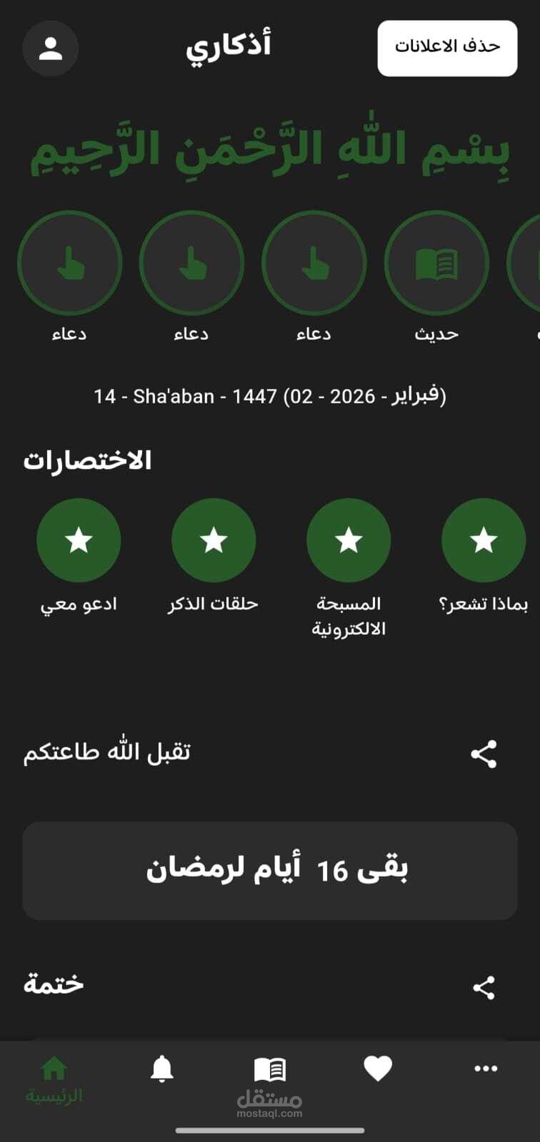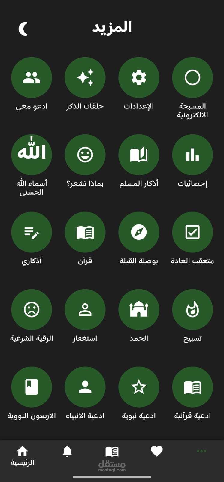 أدوات ذكية: بوصلة القبلة في الوقت الحقيقي باستخدام حساسات الجهاز، ومسبحة رقمية مع دعم الاهتزاز (Haptic Feedback).