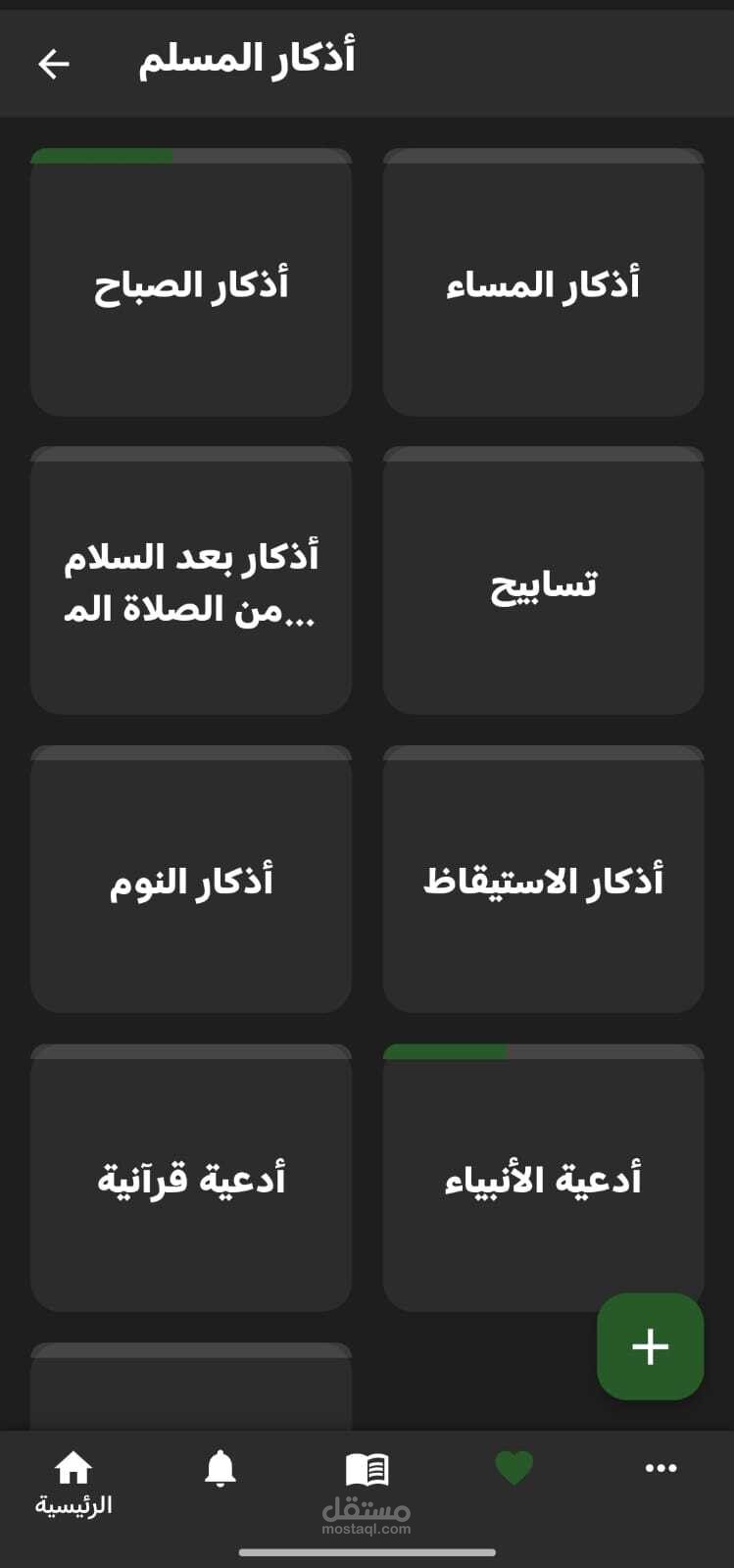 مكتبة المحتوى: أذكار مصنفة (صباحًا، مساءً، قبل النوم، إلخ) وأدعية (حصن المسلم) مُرتبة وموضوعة بكفاءة من ملفات JSON محلية.