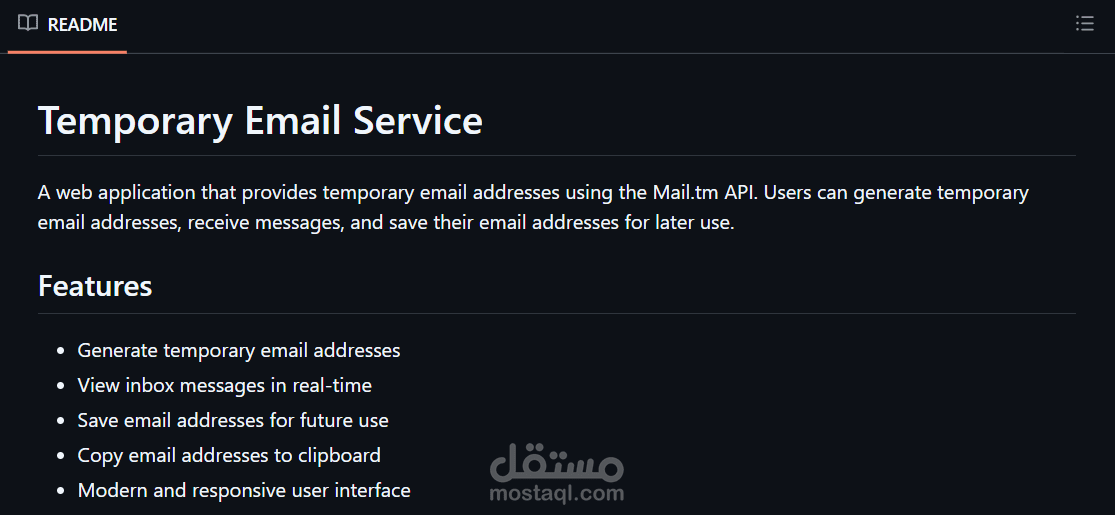 من هنا تم بناء خدمة بريد إلكتروني مؤقت تتيح للمستخدم إنشاء عنوان بريد فوري، استقبال الرسائل في الوقت الحقيقي، والاحتفاظ بالعناوين لاستخدامها لاحقًا.