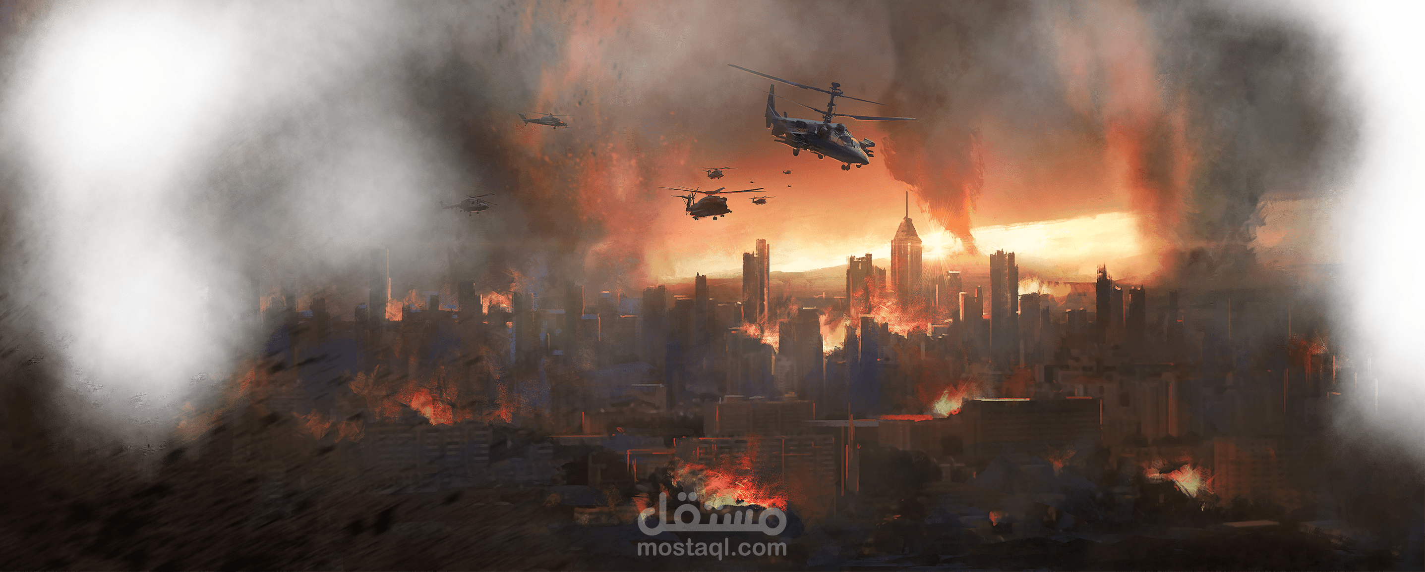 العمل يعتمد على دمج احترافي متعدد العناصر داخل مشهد واحد متكامل، مع استخدام إضاءة درامية وألوان نارية تعزز الإحساس بالقوة والتشويق.