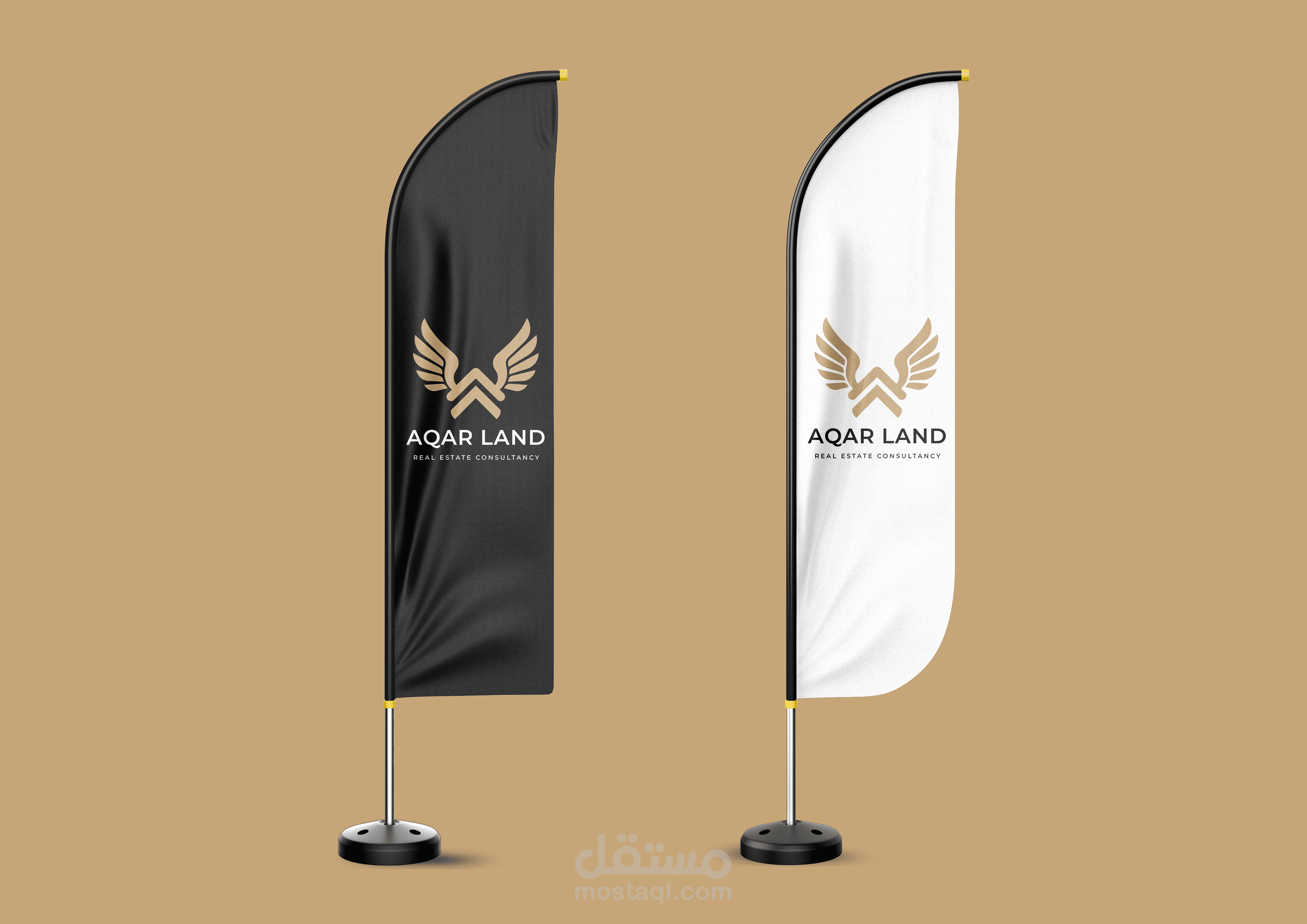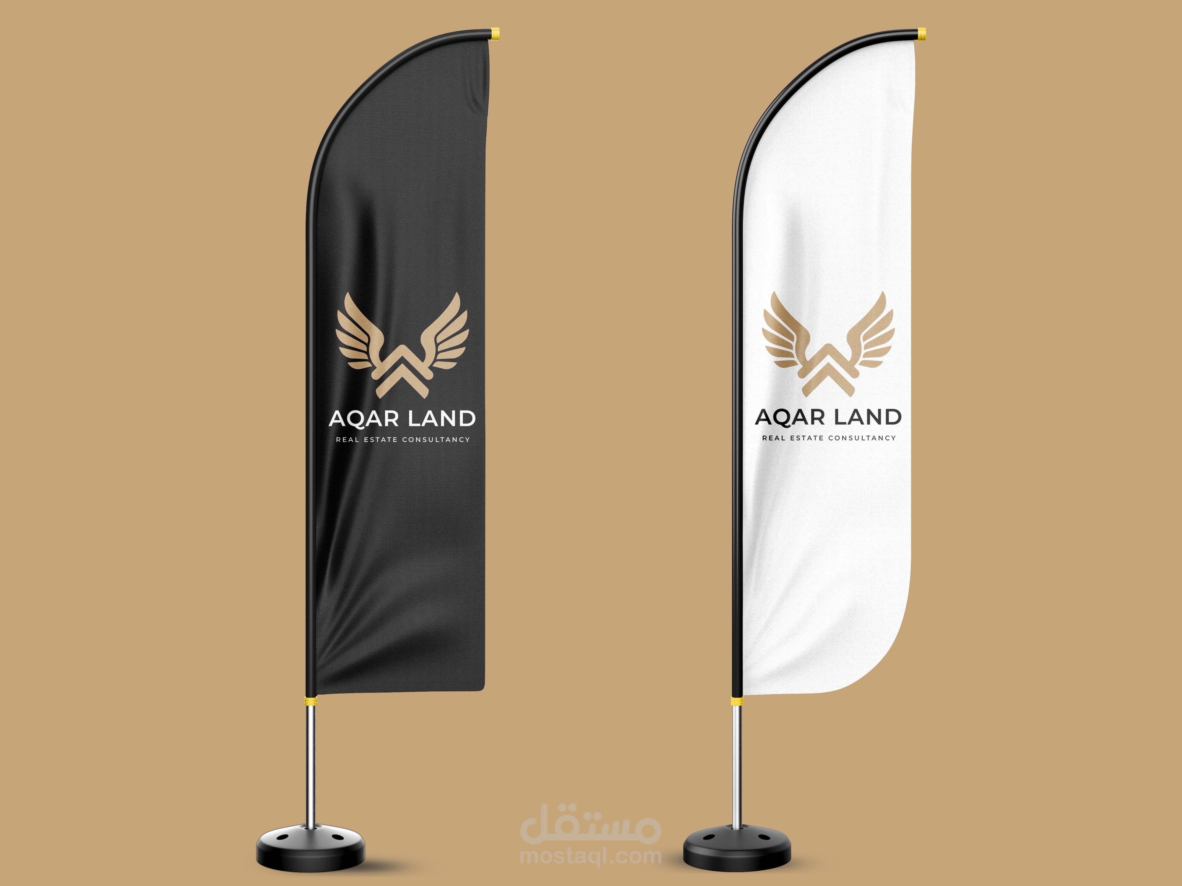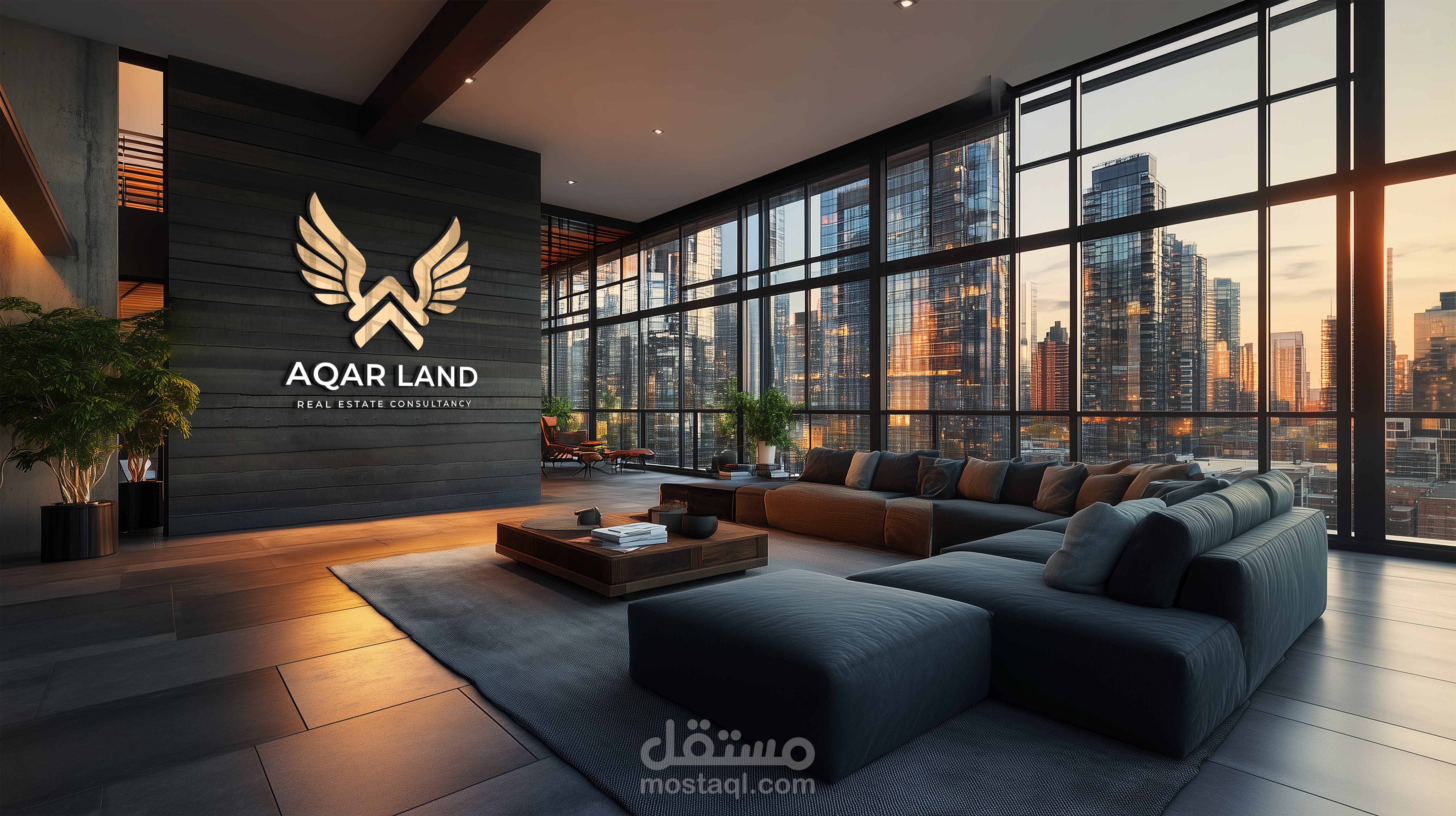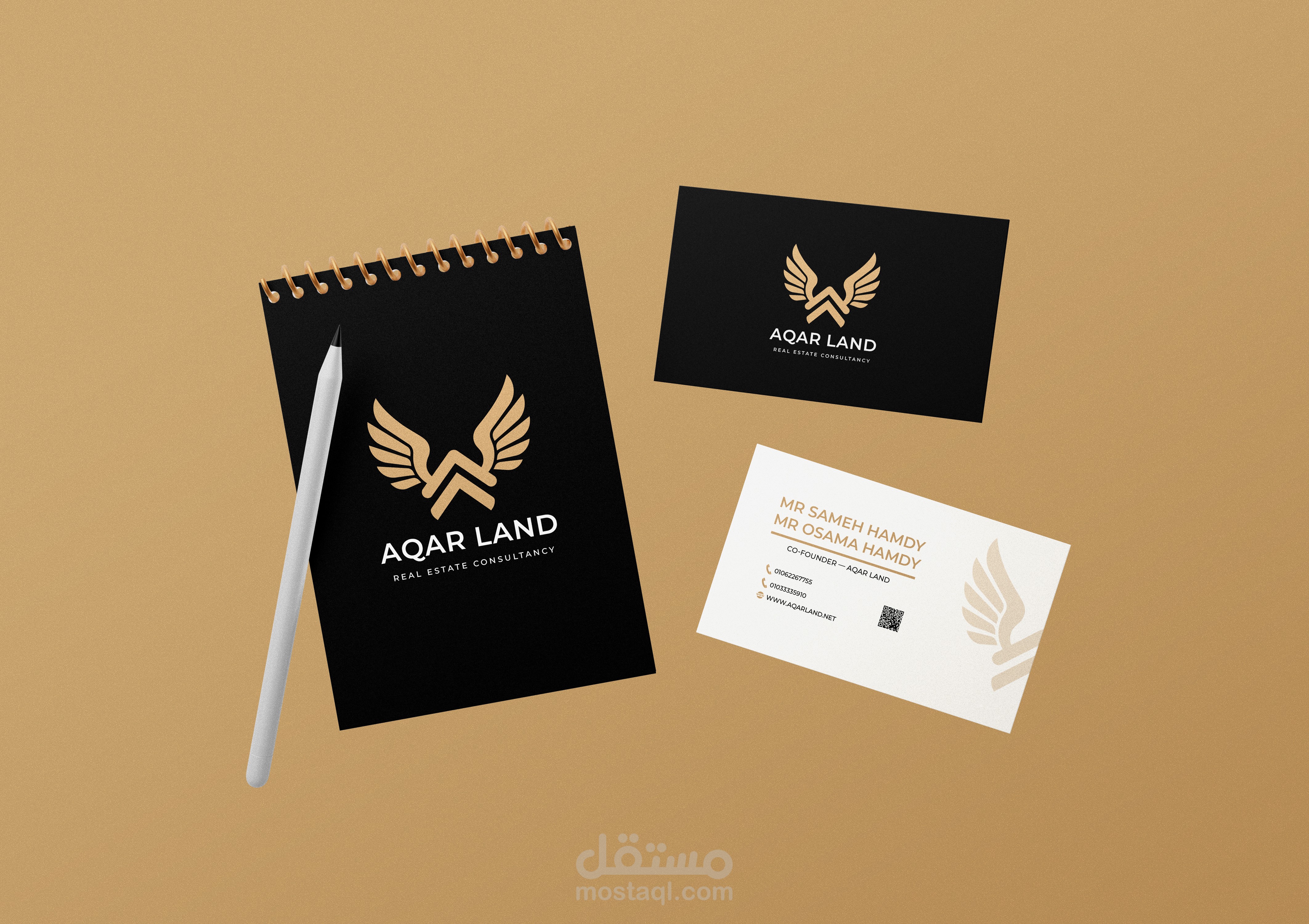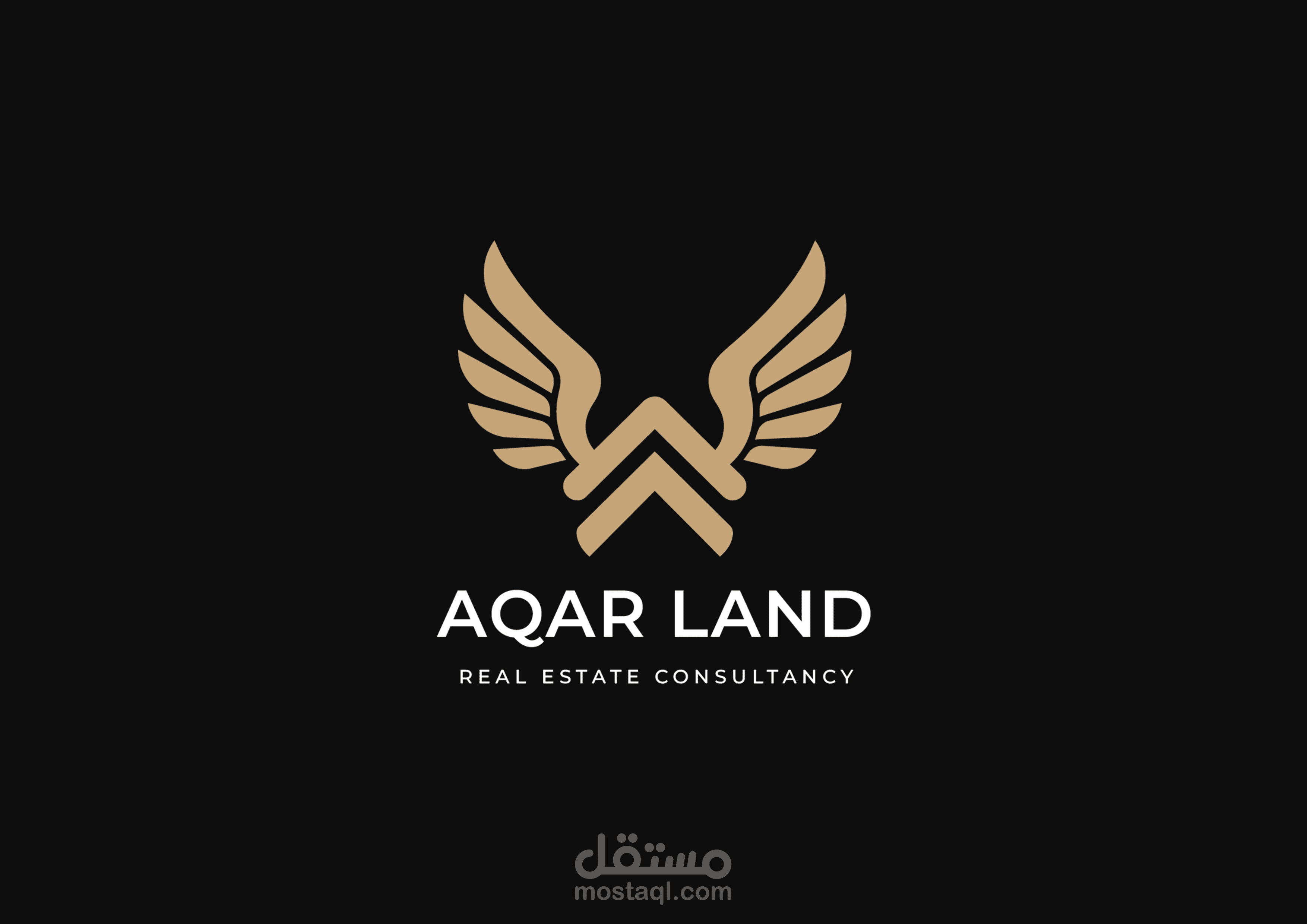 تصميم هوية بصرية احترافية لعلامة Aqar Land في مجال الاستشارات العقارية، يعتمد على شعار (Logo) عصري وفاخر يعكس القوة، الثقة، والاستقرار، وهي قيم أساسية في قطاع العقارات.