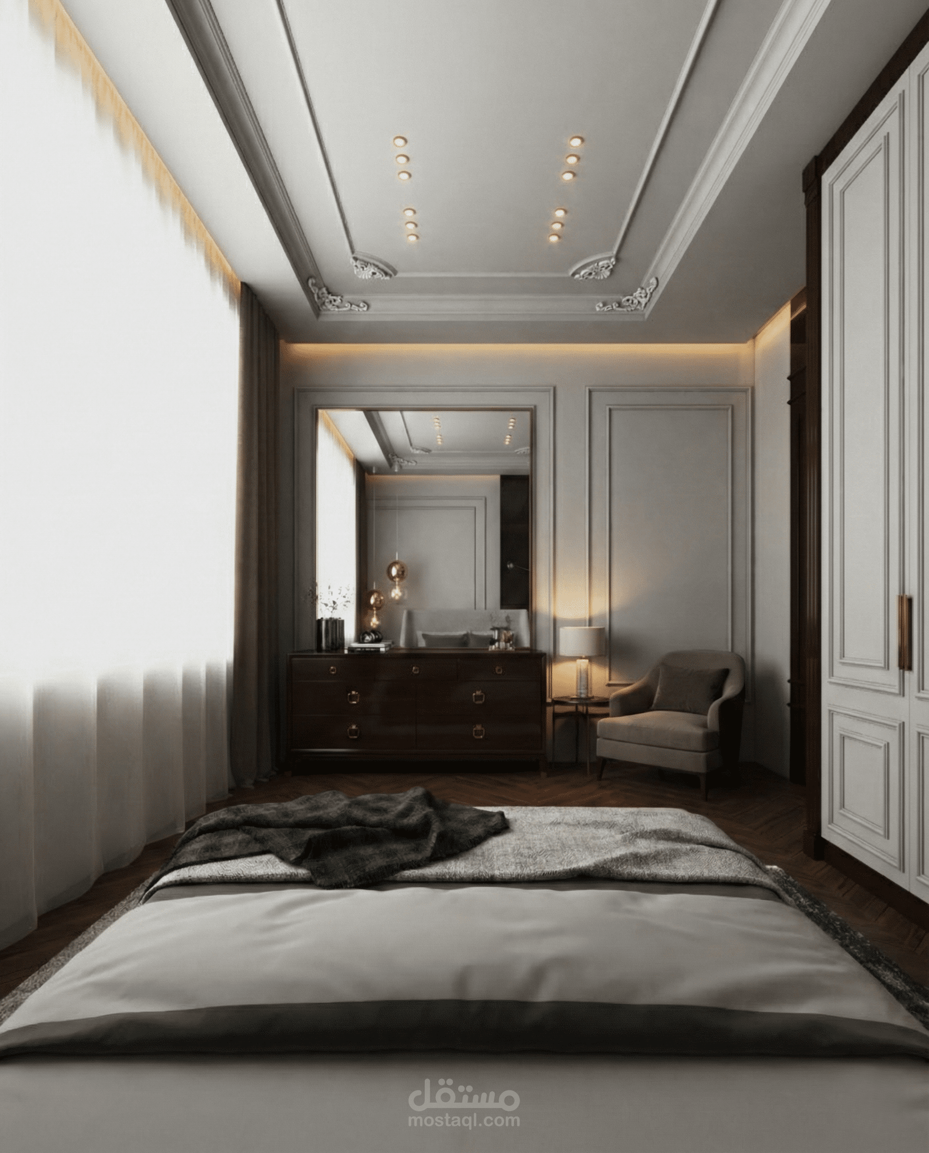 غرفة نوم بتصميم نيو كلاسيك