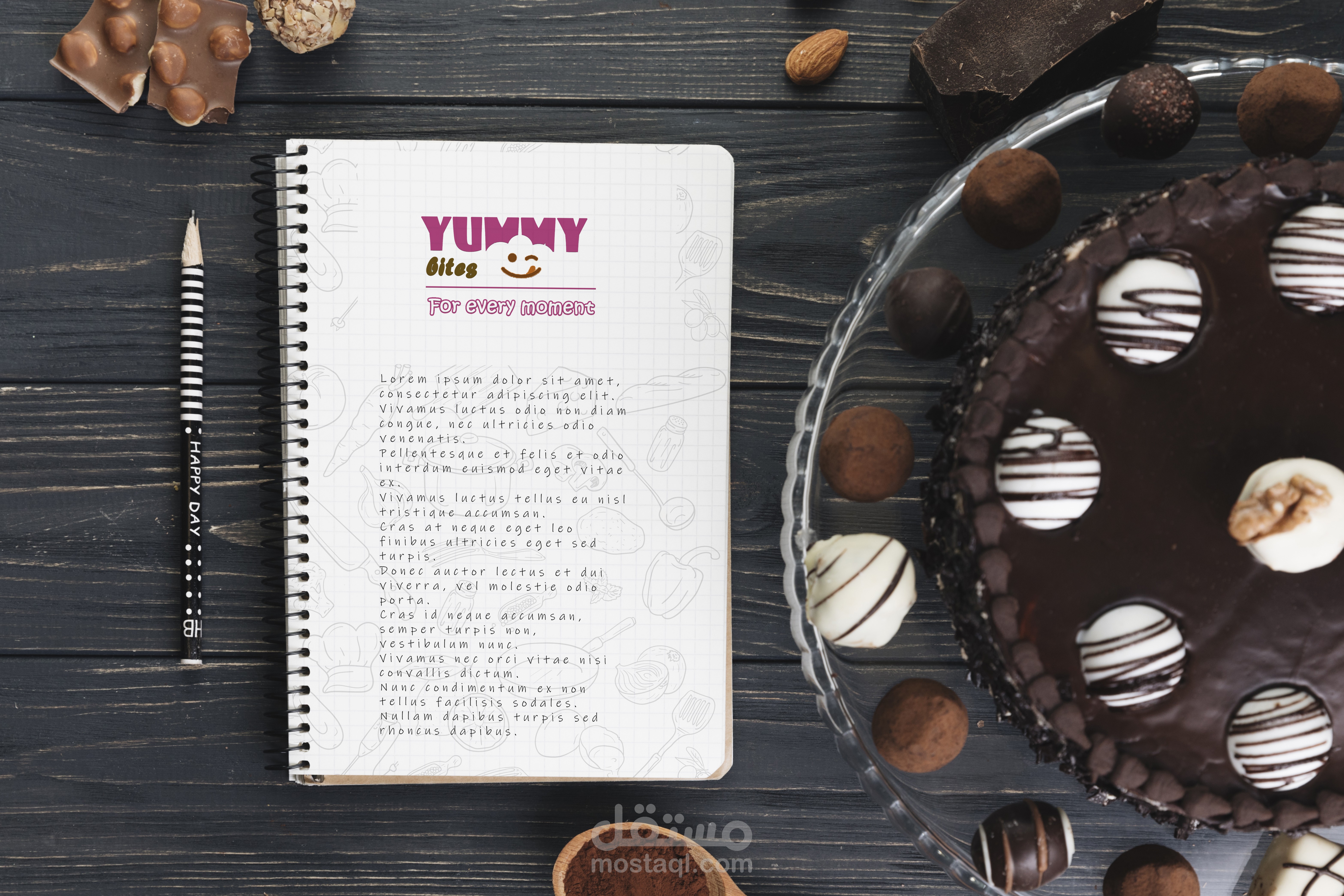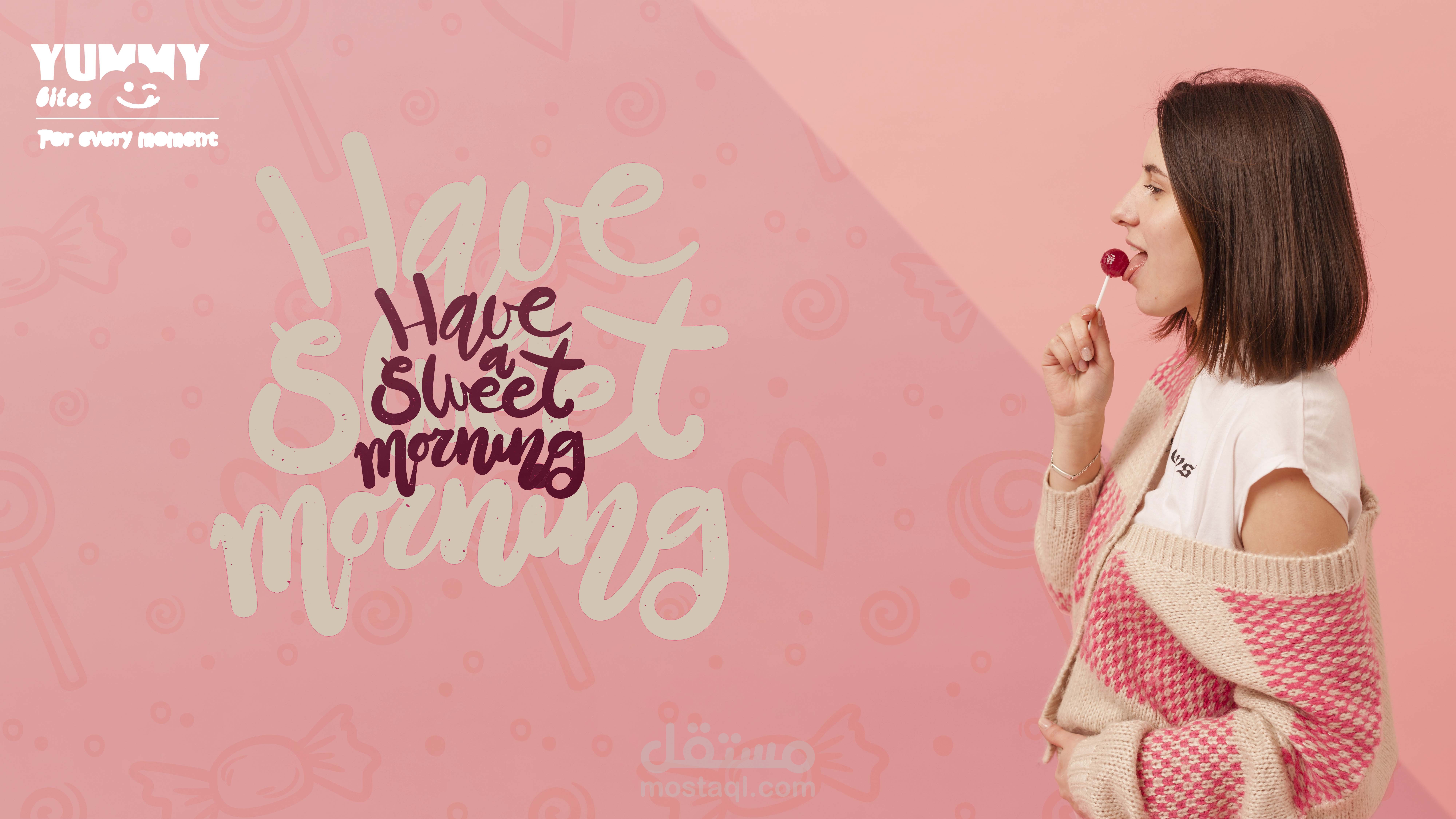 عملنا في هذا الشعار ان يكون مرحا وذو الوان لطيفة هادئة وتجسيد فكرة القضمة اللذيذة لجذب العملاء وربطهم بشكل أكبر بالهوية
