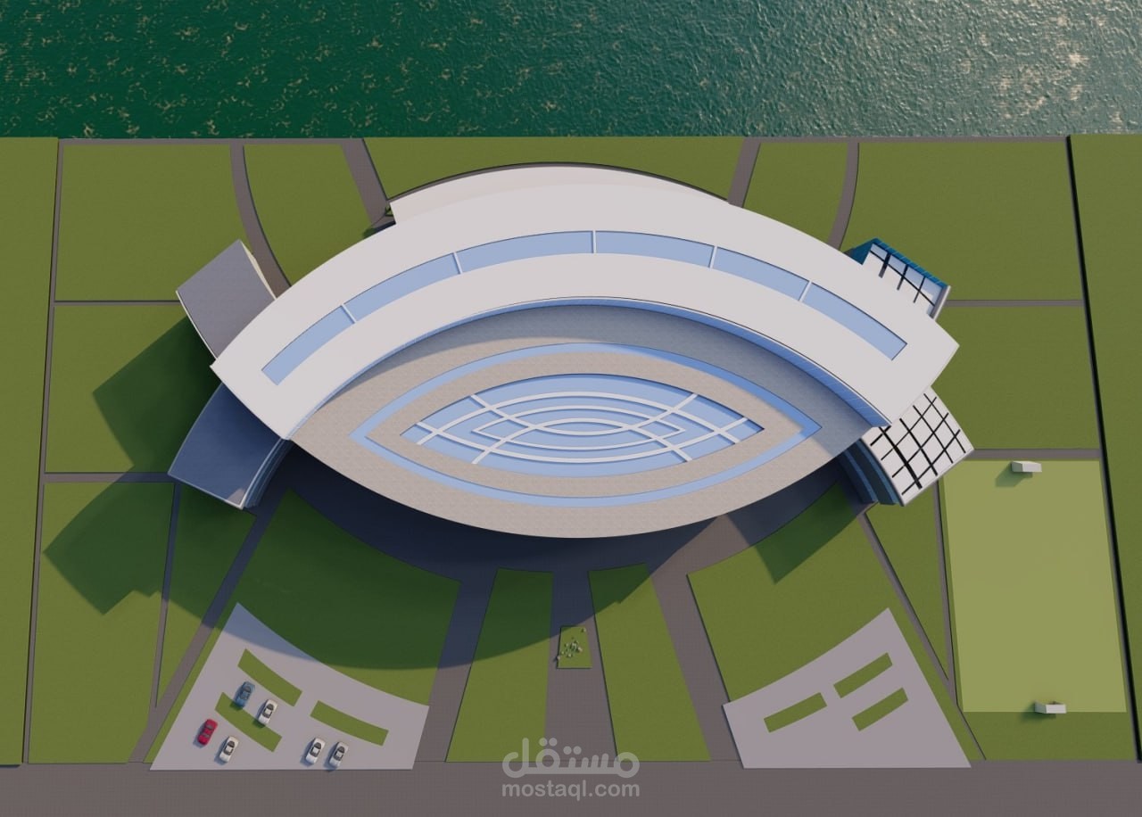جاءت الكتلة الرئيسية بشكل عضوي انسيابي يشبه الشكل البيضاوي/العيني، بهدف خلق حركة معمارية ناعمة وكسر حدة الزوايا التقليدية للمراكز التجارية، مع تعزيز الإحساس بالاحتواء والتركيز نحو القلب الداخلي للمول. هذا التكوين يسمح بتوزيع متوازن للوظائف حول فراغ مركزي يمثل نقطة التجمع الأساسية.