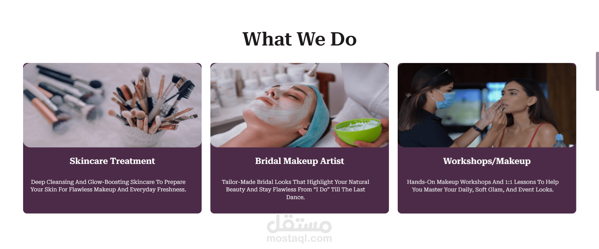 العناية بالبشرة: يقدم الموقع خدمات تنظيف عميق وتنشيط البشرة لإعدادها للمكياج، مما يساعد في إبراز الجمال الطبيعي للعميل.