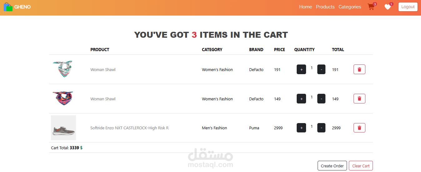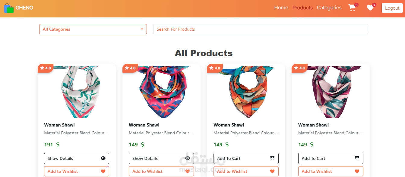 3- صفحة المنتجات والبحث عن منتج بالاسم او الفئة
