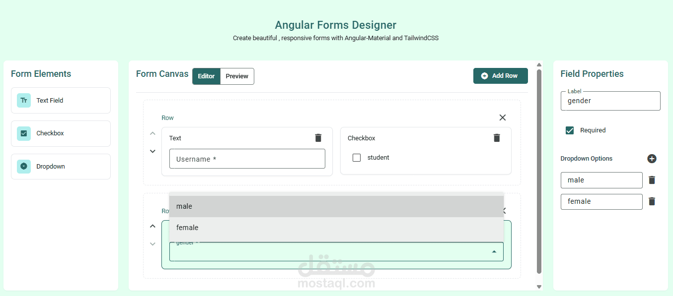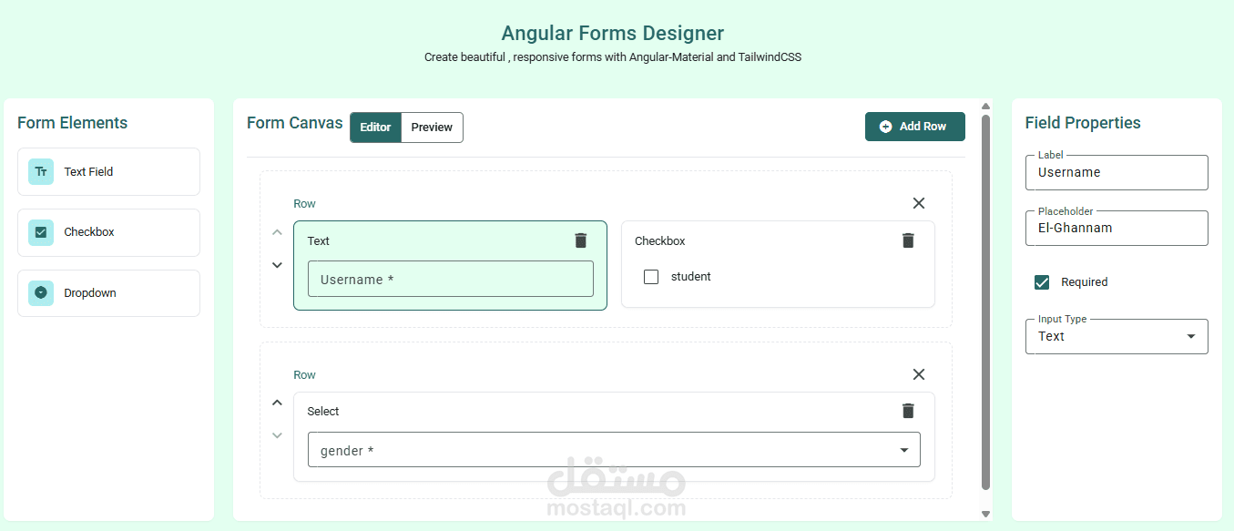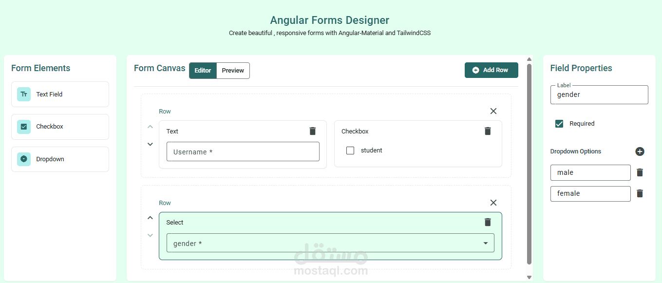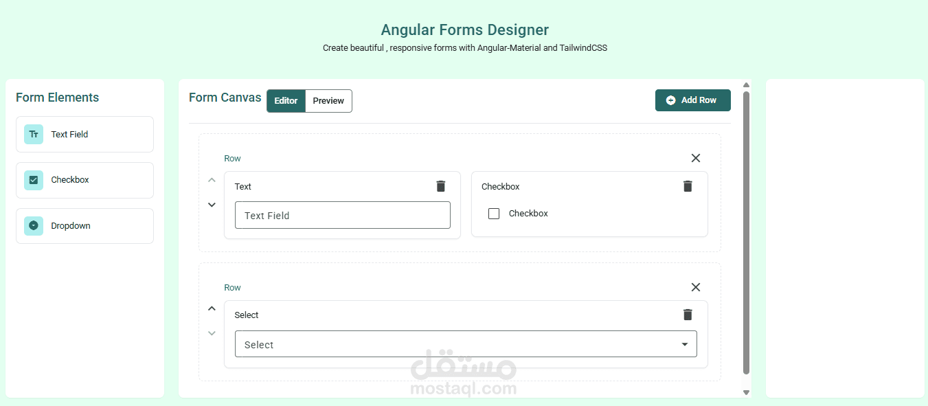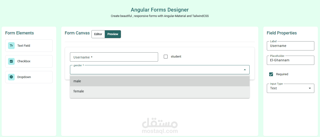موقع لانشاء النماذج الديناميكية ومعاينة النموذج والتحكم فى المظهر والخصائص ثم استخراج الكود (typescript)