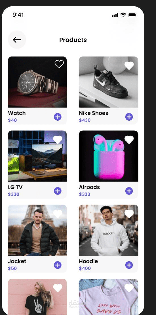 إظهار تفاصيل أساسية لكل منتج (الصورة، الاسم، السعر).