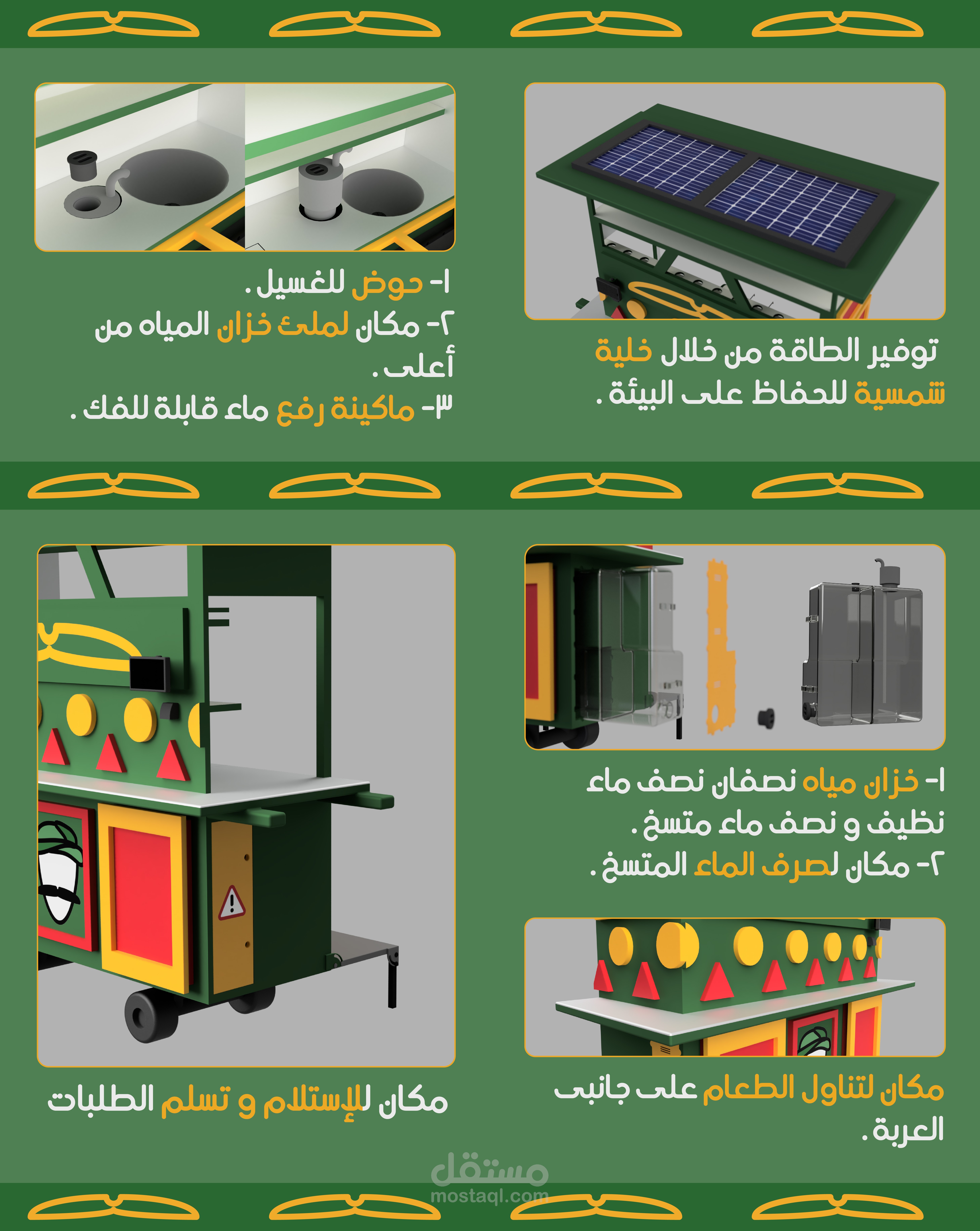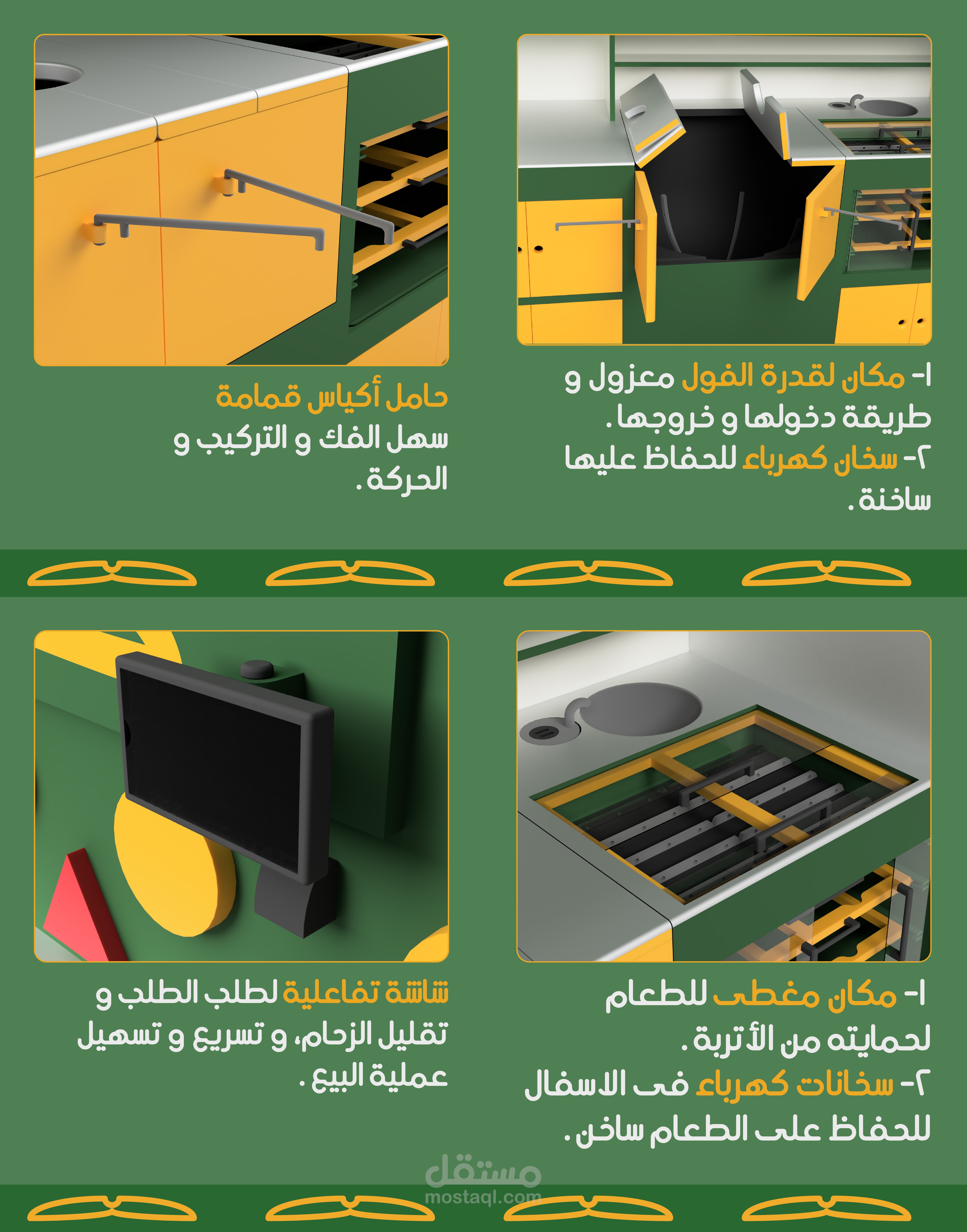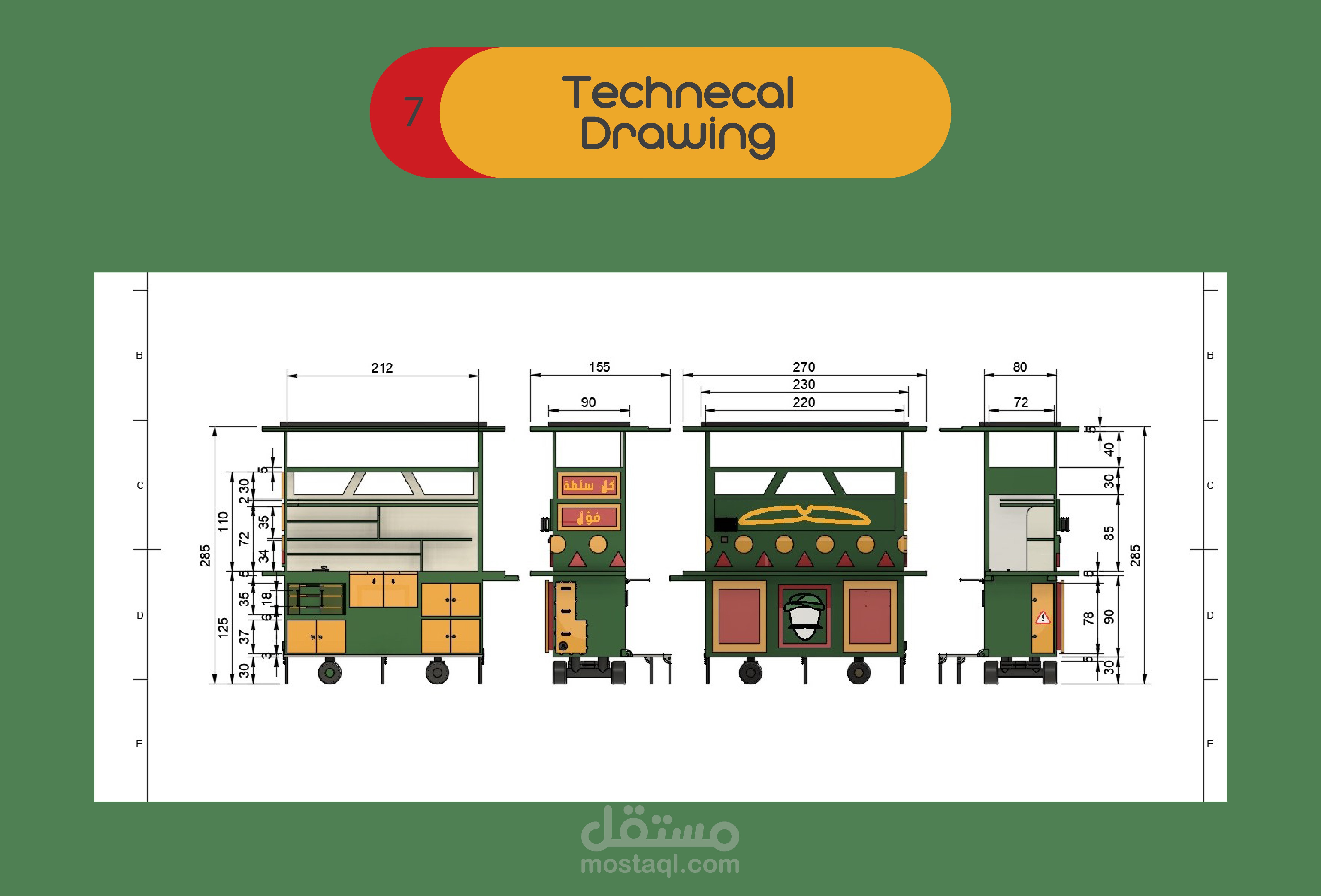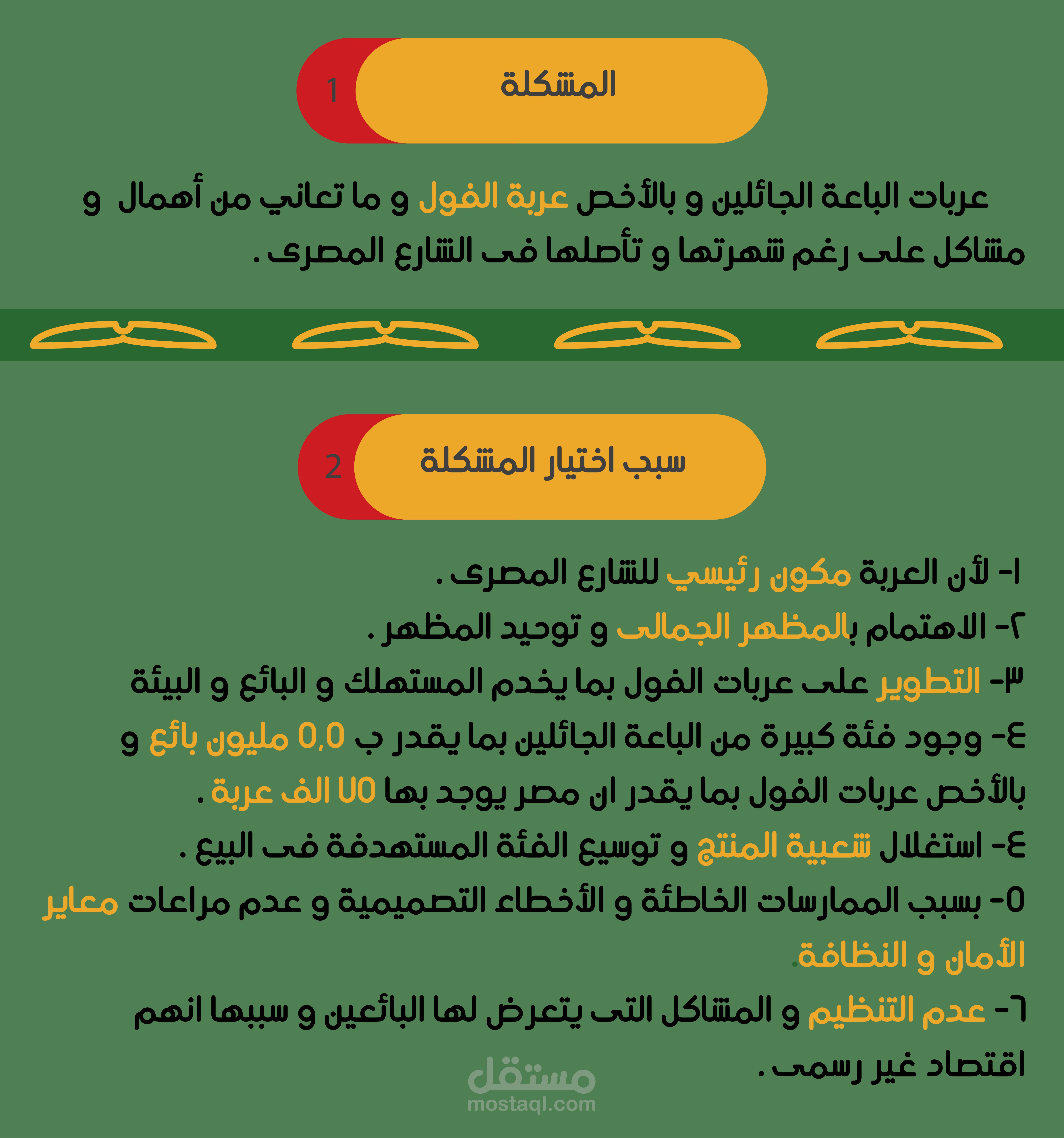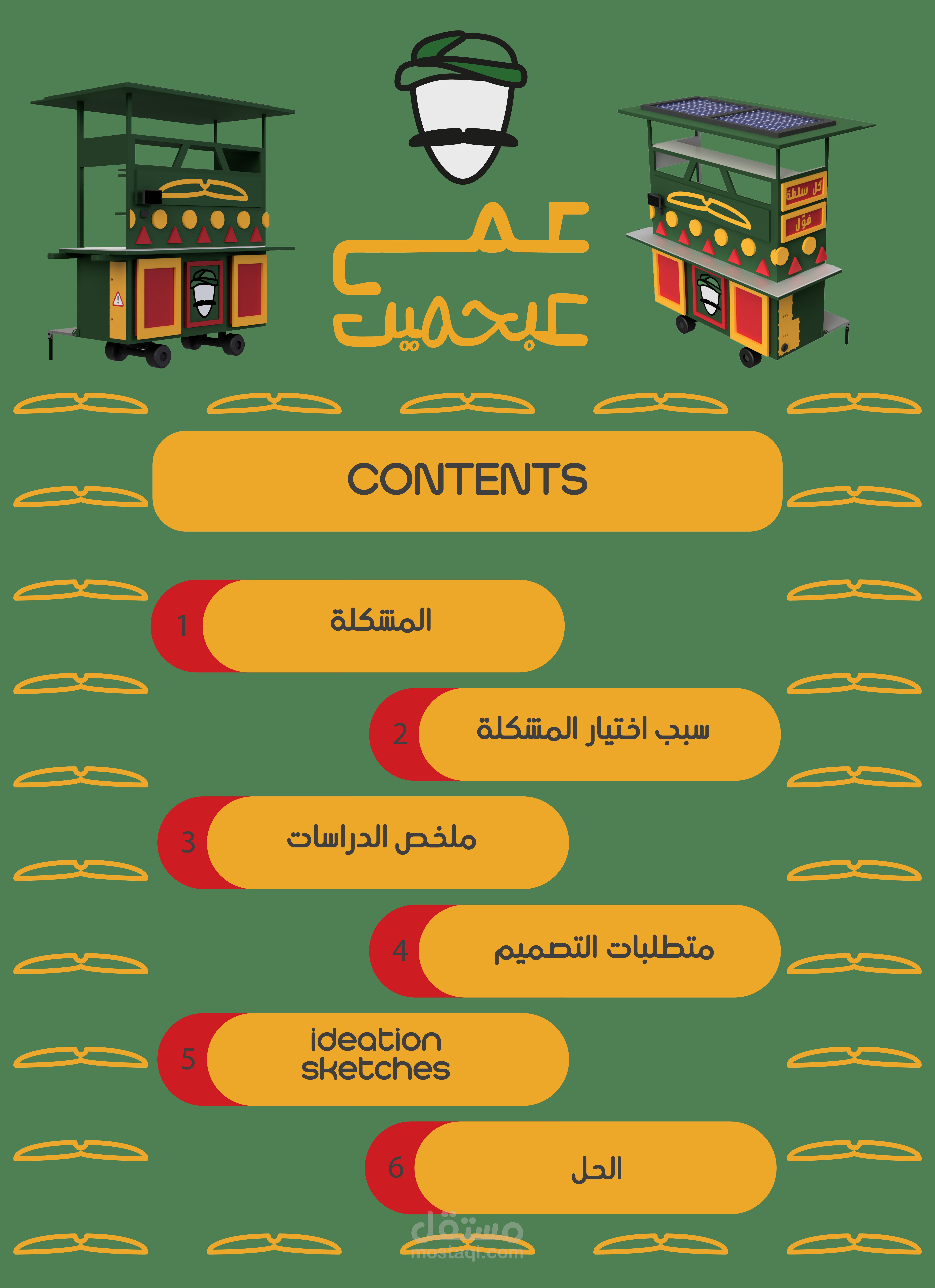 و هو تصميم عربة فول متنقلة و تطويرها و جعلها افضل من الناحية الجمالية و الوظيفية و الارجنومكية و البيئية و تفادى المشكلات الموجودة فى التصميم الحالى، بهدف استهداف فئة اكبر من الزبائن و جعل تجربة المستخدم افضل .