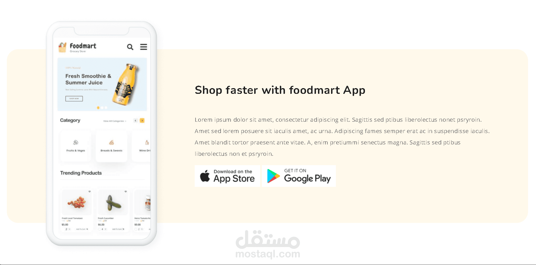 منصة تجارة إلكترونية متكاملة لبيع المنتجات الغذائية (FoodMart)، صُممت لتوفير تجربة تسوق رقمية عصرية وسريعة، مع نظام إدارة خلفي قوي يمنح أصحاب المتاجر تحكماً كاملاً في المخزون والعمليات. تم بناء المشروع باتباع أفضل الممارسات البرمجية لضمان الأداء العالي وقابلية التوسع.