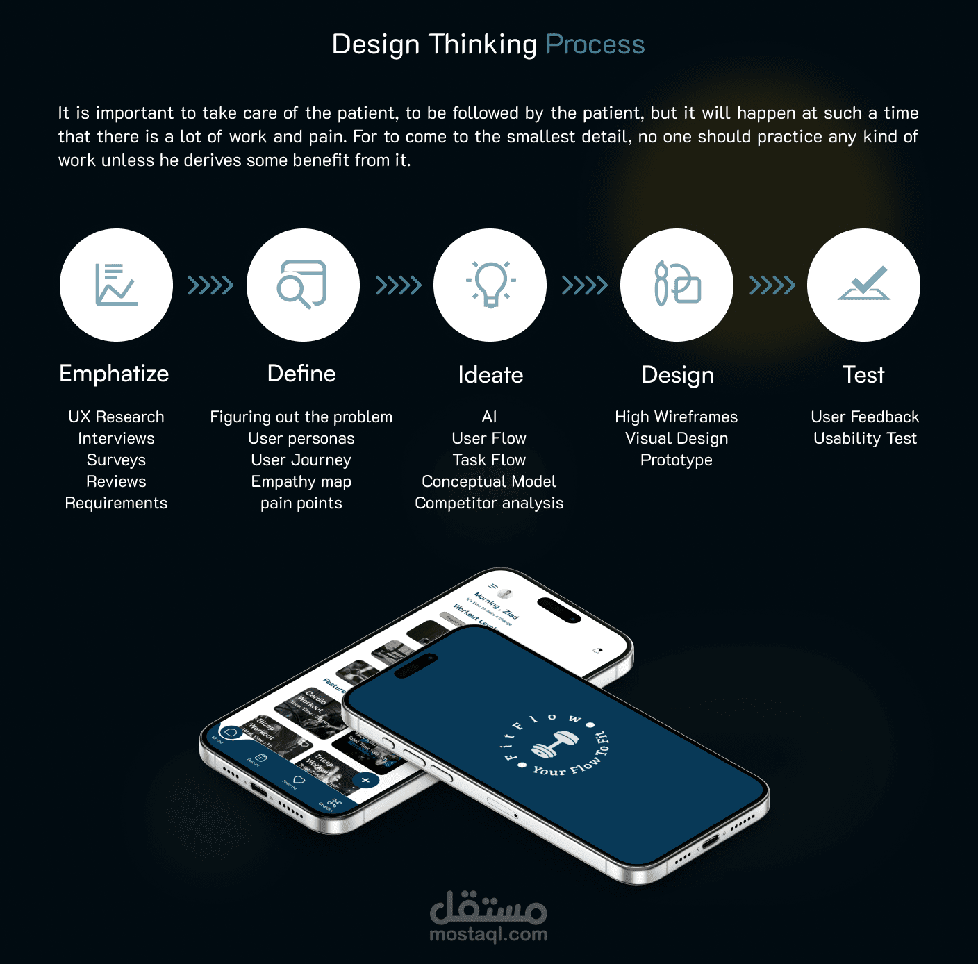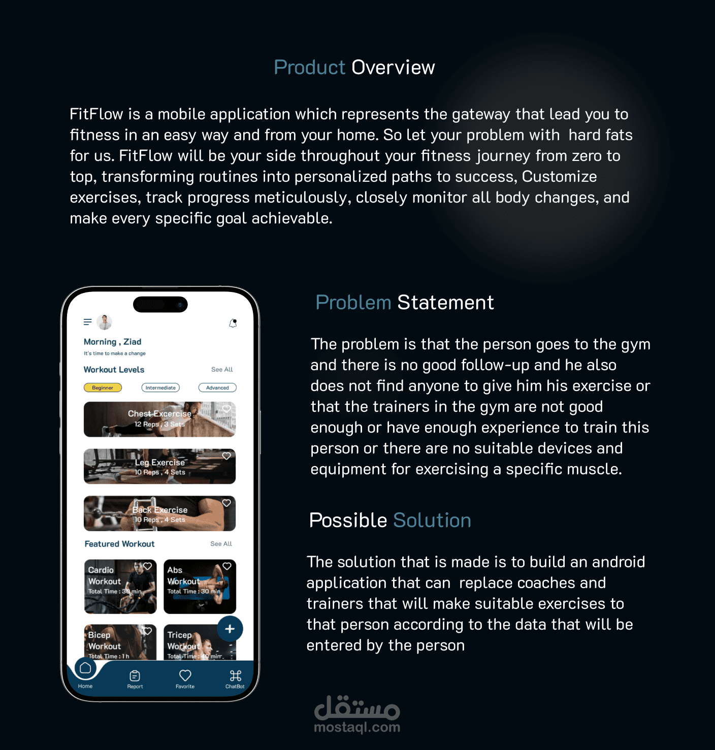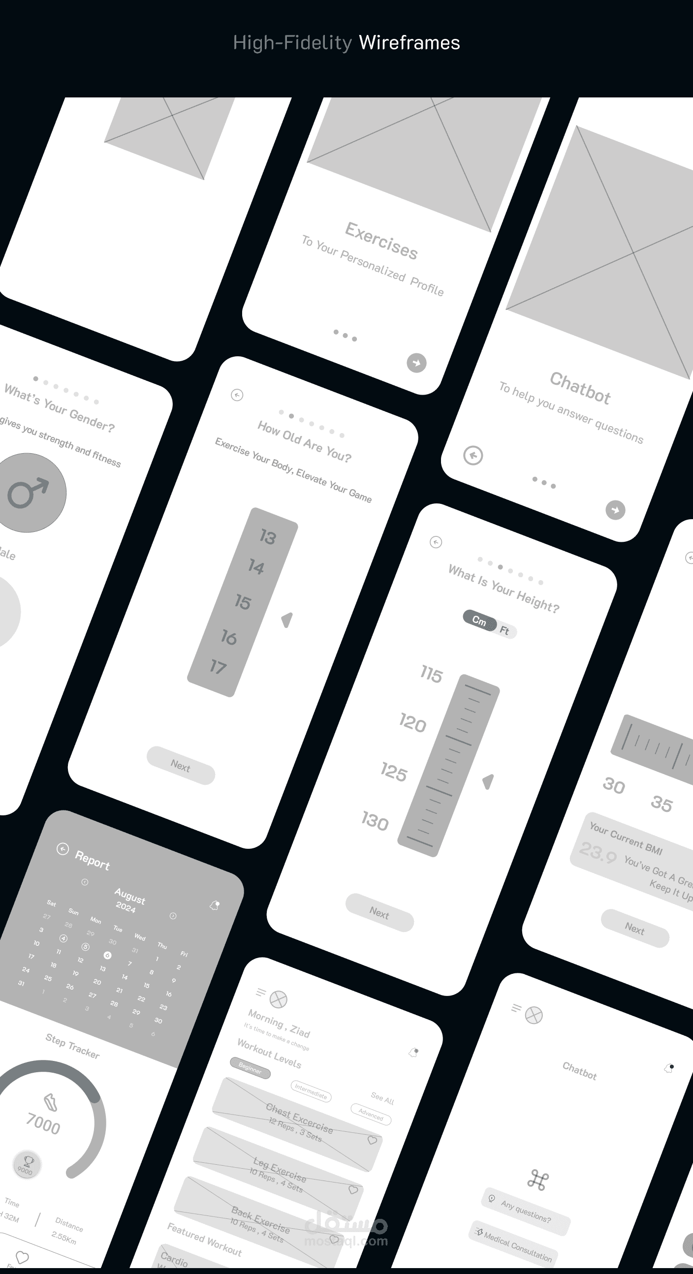 تصميم UI/UX لتطبيق موبايل يمثّل بوابتك لعالم اللياقة البدنية من البيت بواجهة سهلة الفهم .