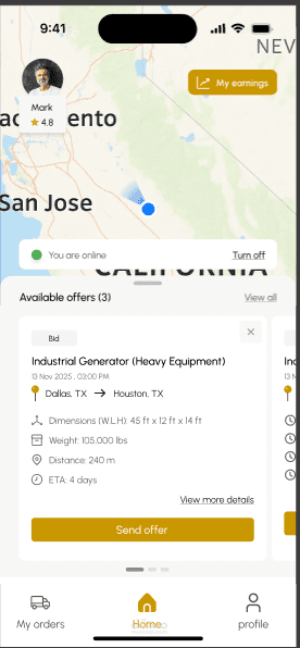 BWM Pilot Cars Load هو تطبيق ذكي متكامل لإدارة وتنسيق خدمات مرافقة الشاحنات ذات الأحمال الثقيلة والضخمة (Oversize / Overweight Loads) في الولايات المتحدة وكندا، يربط بين سائقي الشاحنات أو شركات النقل وبين سائقي سيارات المرافقة المعتمدين (Pilot Cars) عبر منصة رقمية واحدة.
