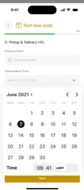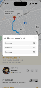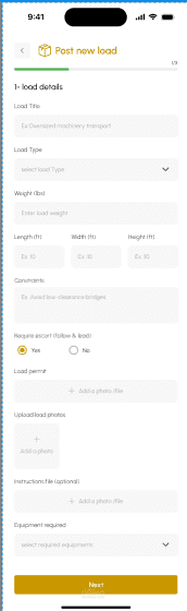 يقوم سائق الشاحنة أو مسؤول الأسطول بإدخال تفاصيل الحمولة (الأبعاد، الوزن، نقطة الانطلاق، الوجهة، المتطلبات الخاصة).