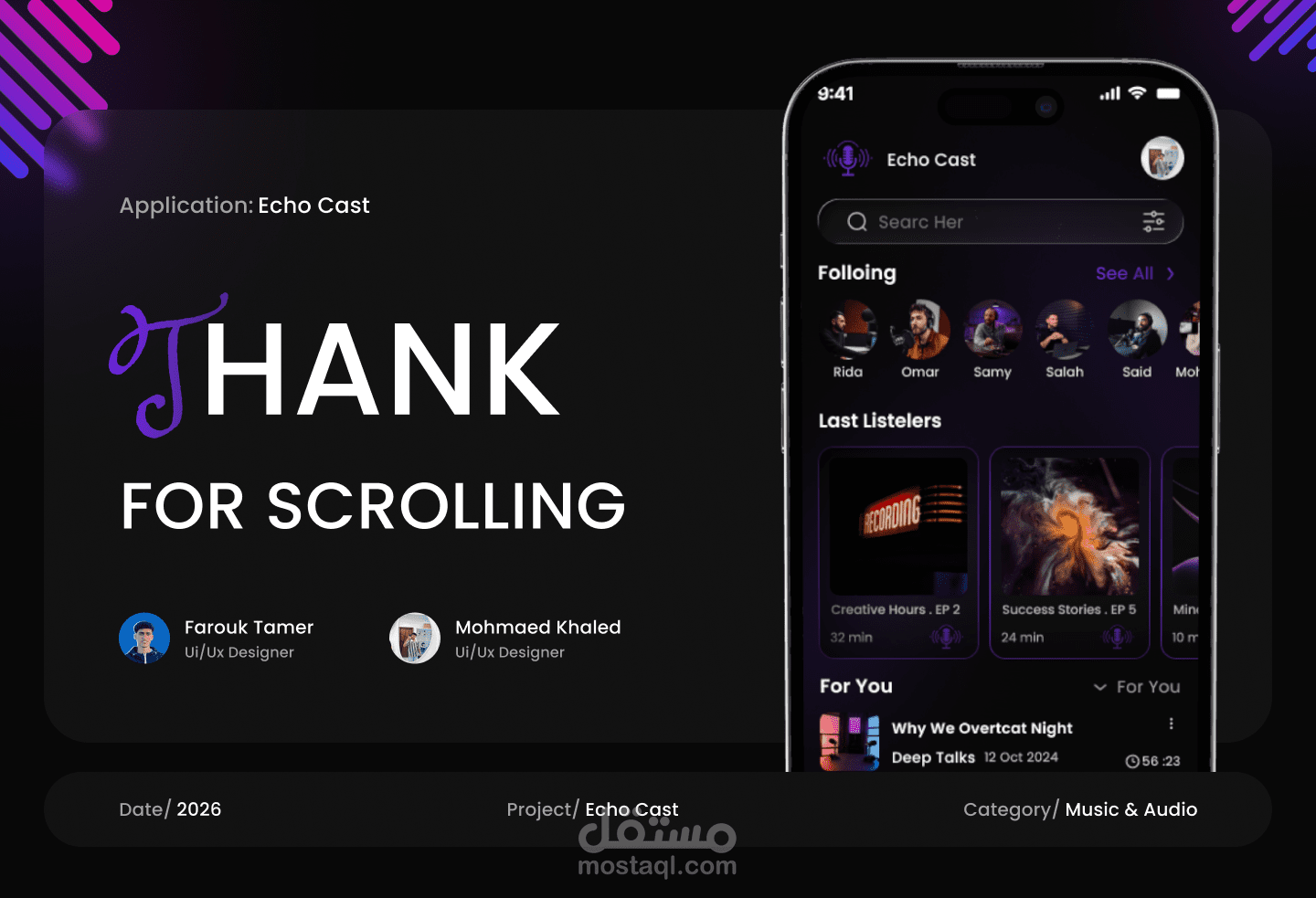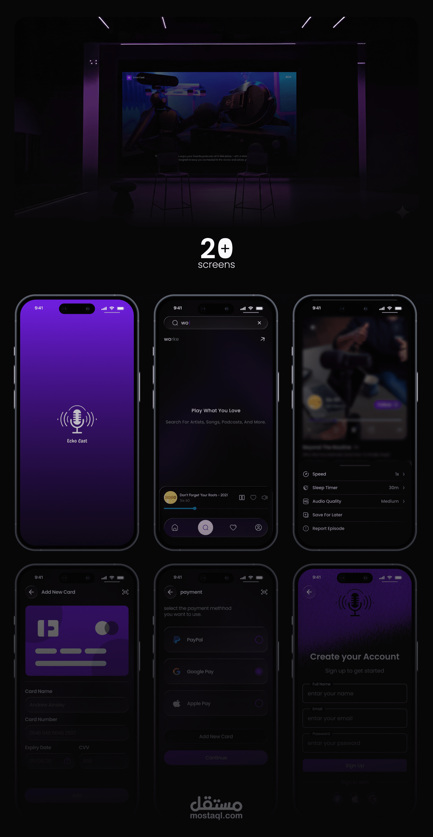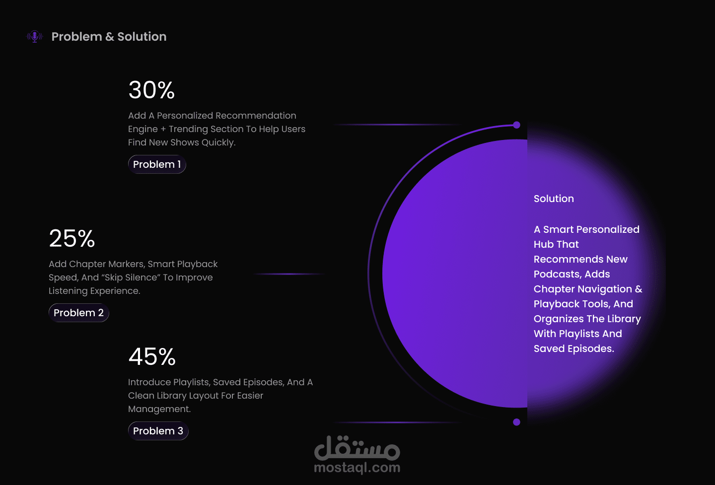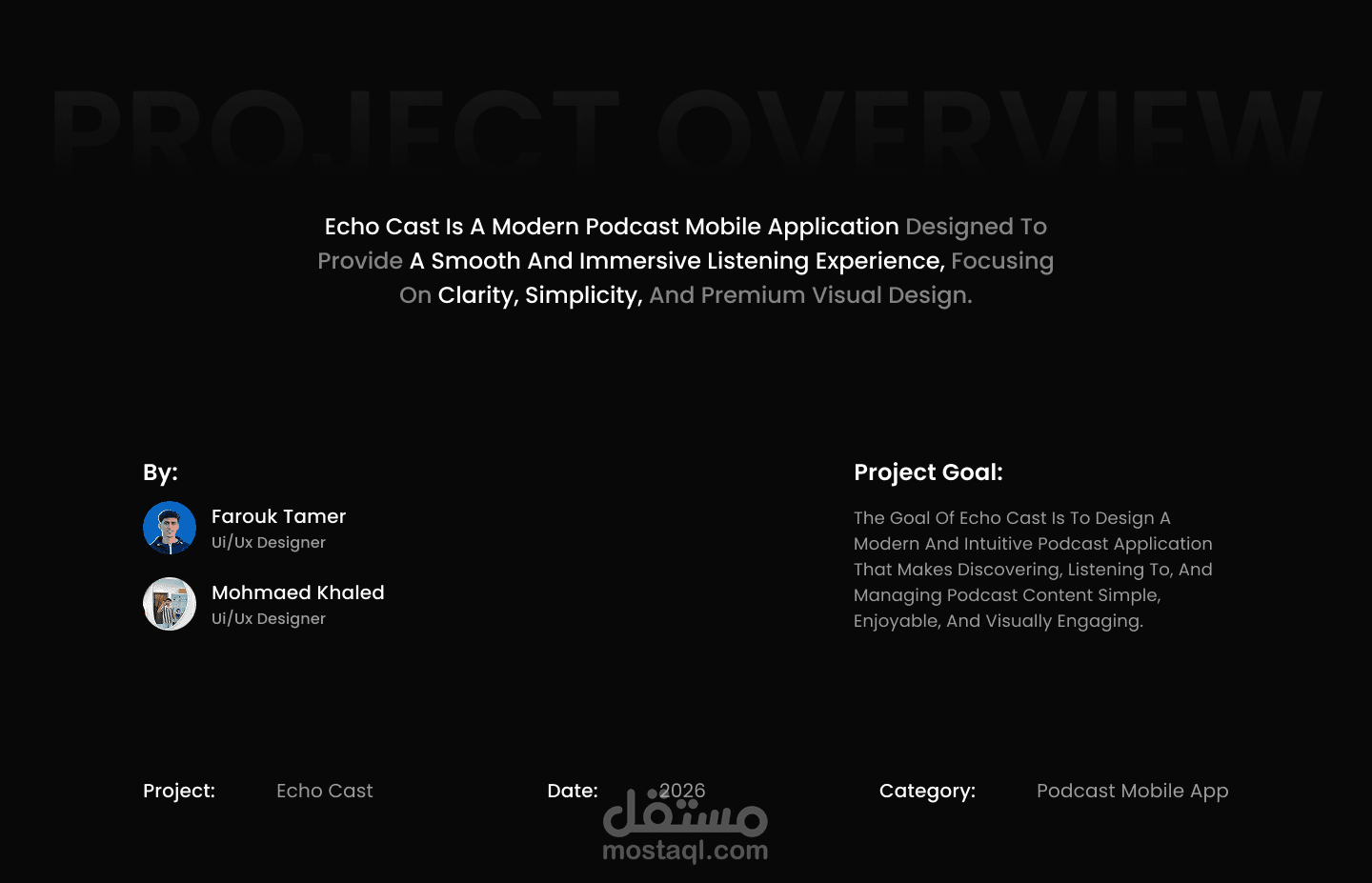 هذا المشروع عبارة عن تصميم واجهة وتجربة مستخدم لتطبيق بودكاست مبتكر يركز على تسهيل اكتشاف المحتوى الصوتي للمستخدمين. ركزت في التصميم على رحلة المستخدم من التسجيل وحتى الاستماع والاشتراك في البودكاست المفضل، مع واجهة بسيطة وعصرية وسهلة الاستخدام.