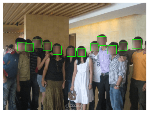 في هذا المثال، تم اكتشاف 12 وجهًا في الصورة وتم تمويهها بنجاح.