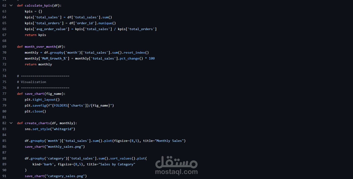 المشروع يحاكي سير عمل تحليل مبيعات التجارة الإلكترونية في العالم الواقعي كما يستخدمه محللو البيانات في الشركات.