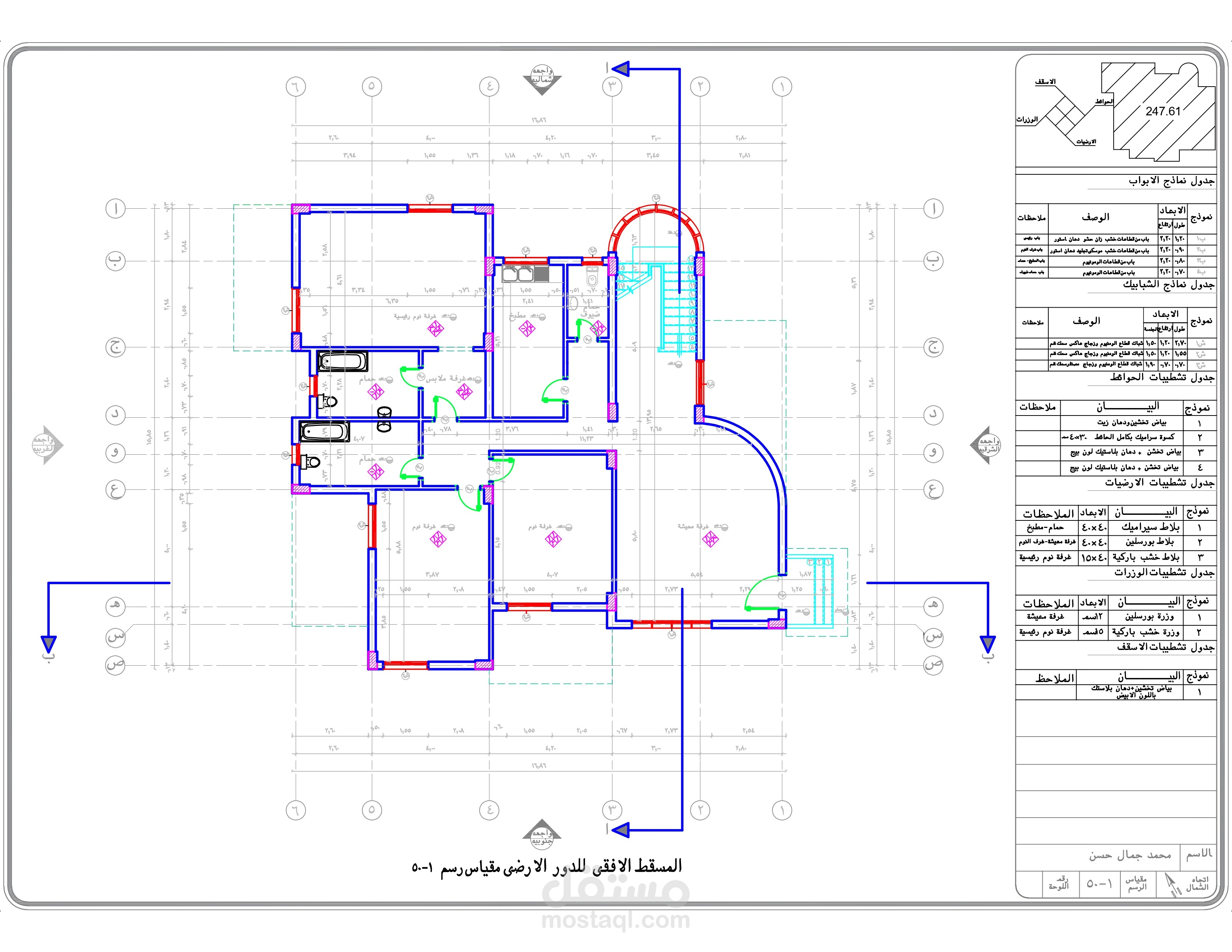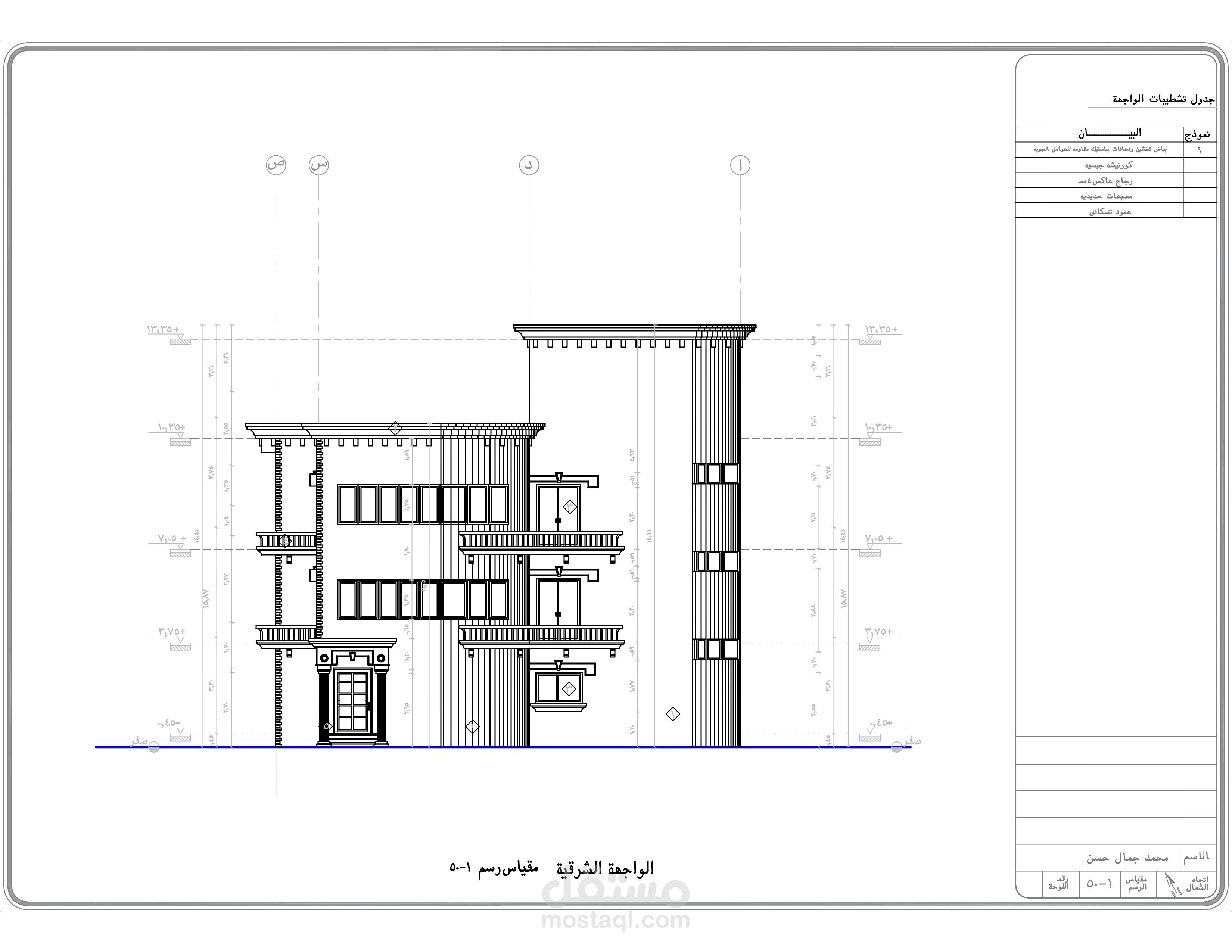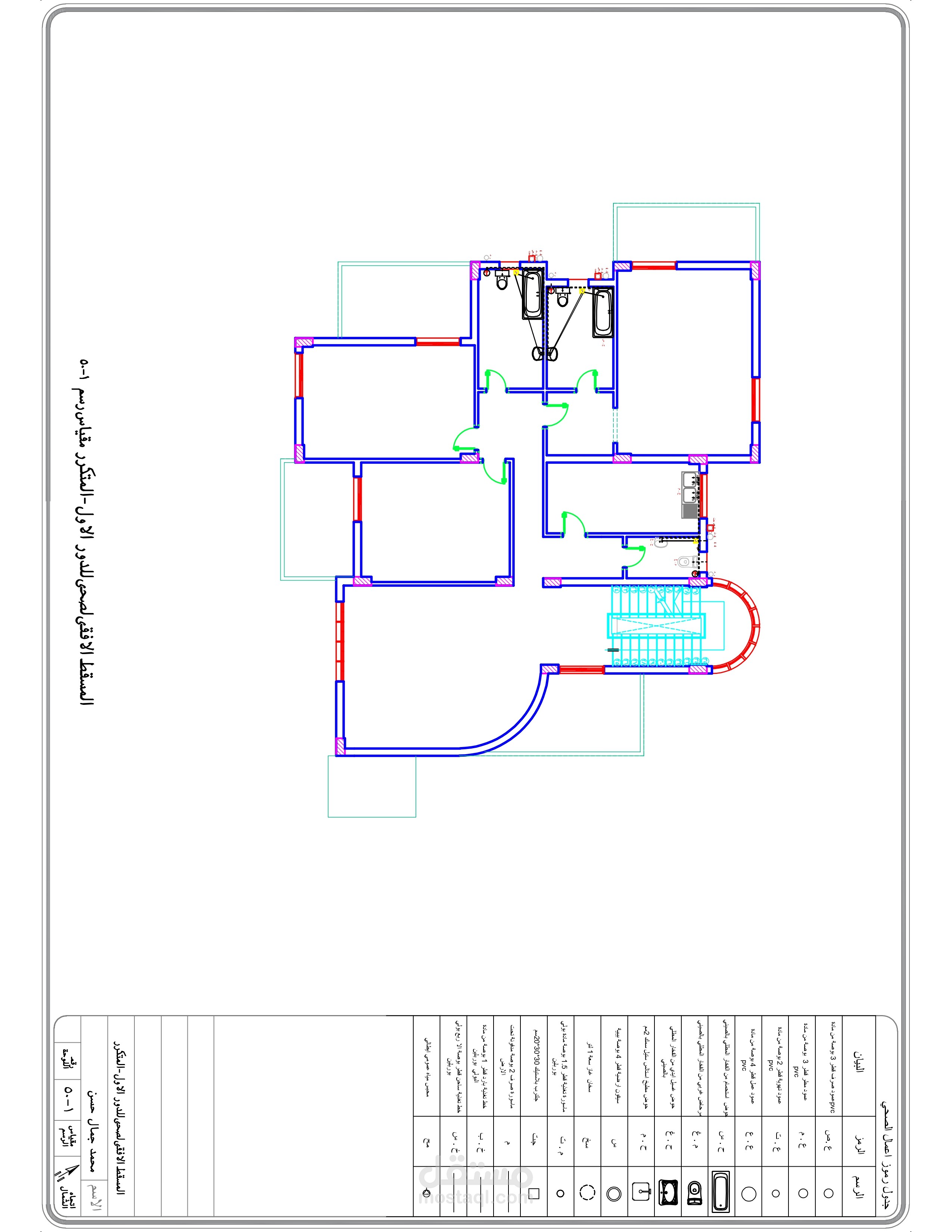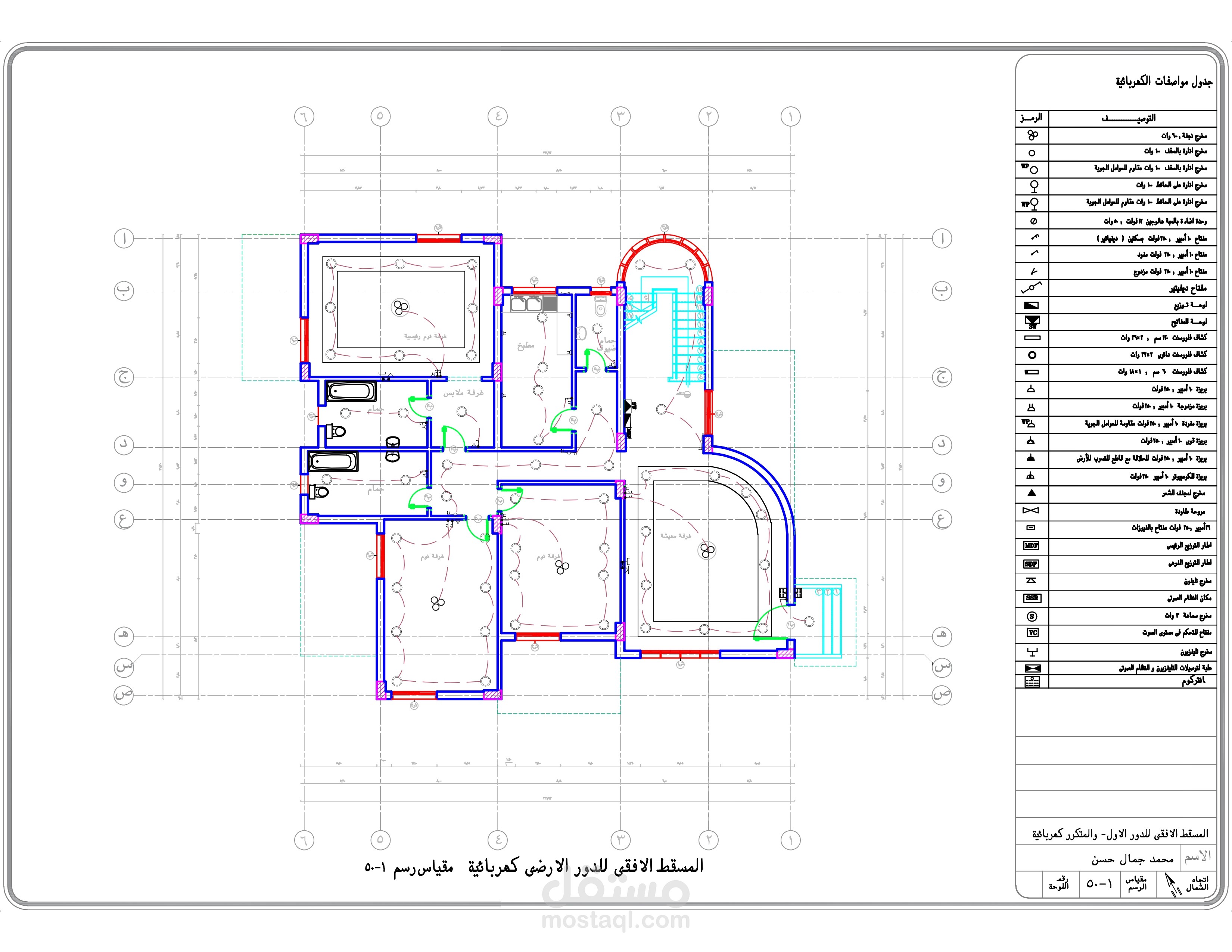 اعداد كافه الرسومات والتفاصيل التنفيذيه والانشائيه للارض والفيلا المطلوبه من العميل و ذلك من اعمال ( الكهرباء - الصرف والتغذيه - الميول - الاساسات - الاعمده )
