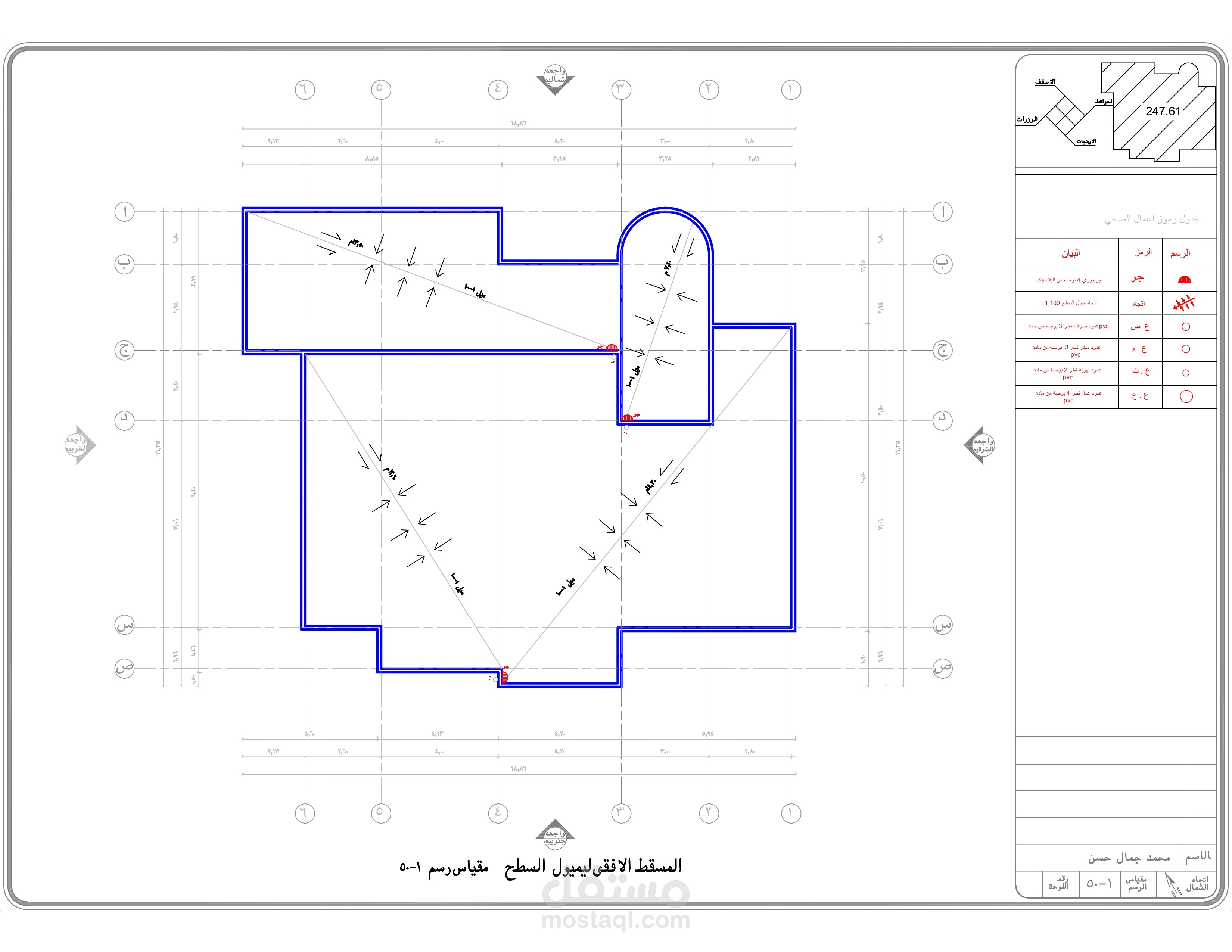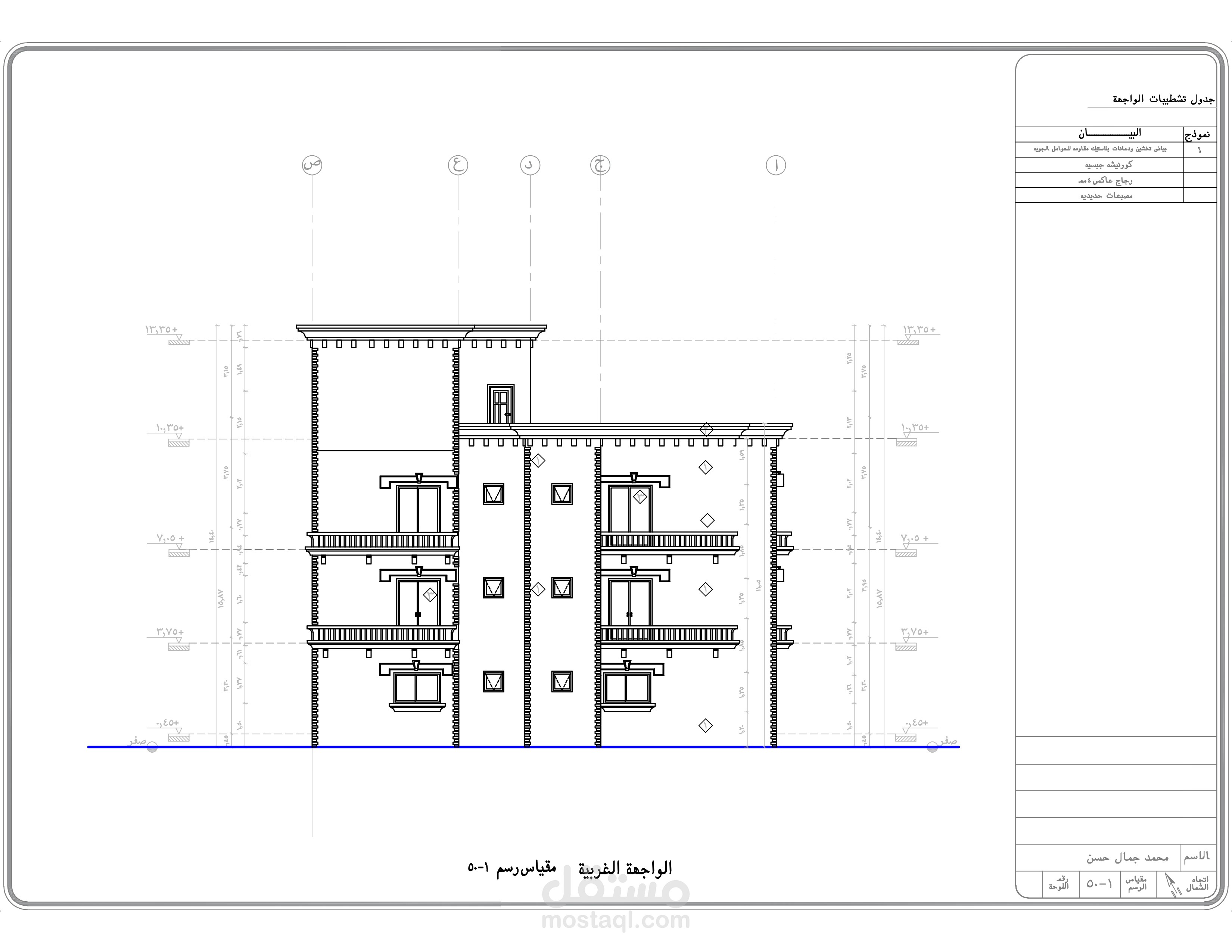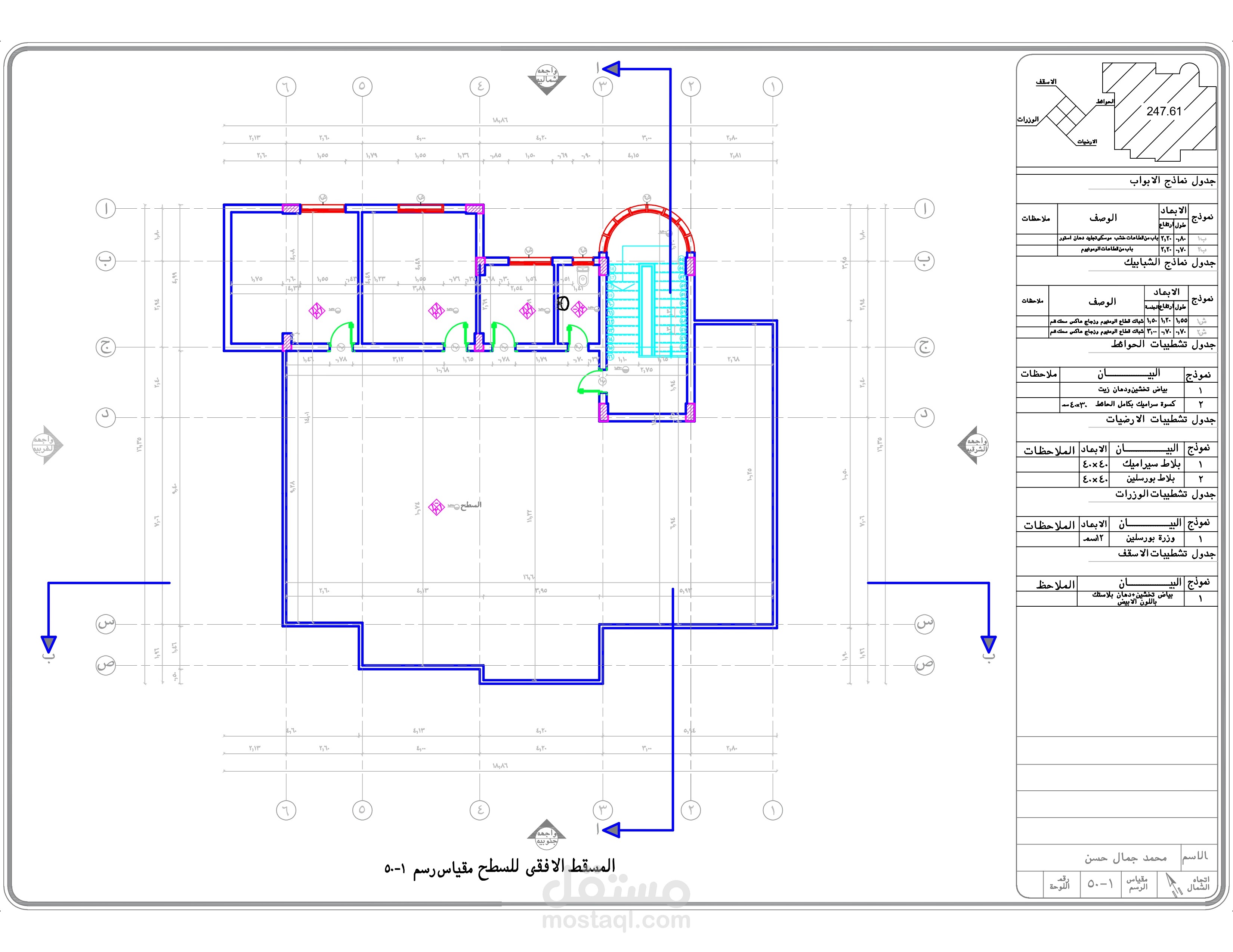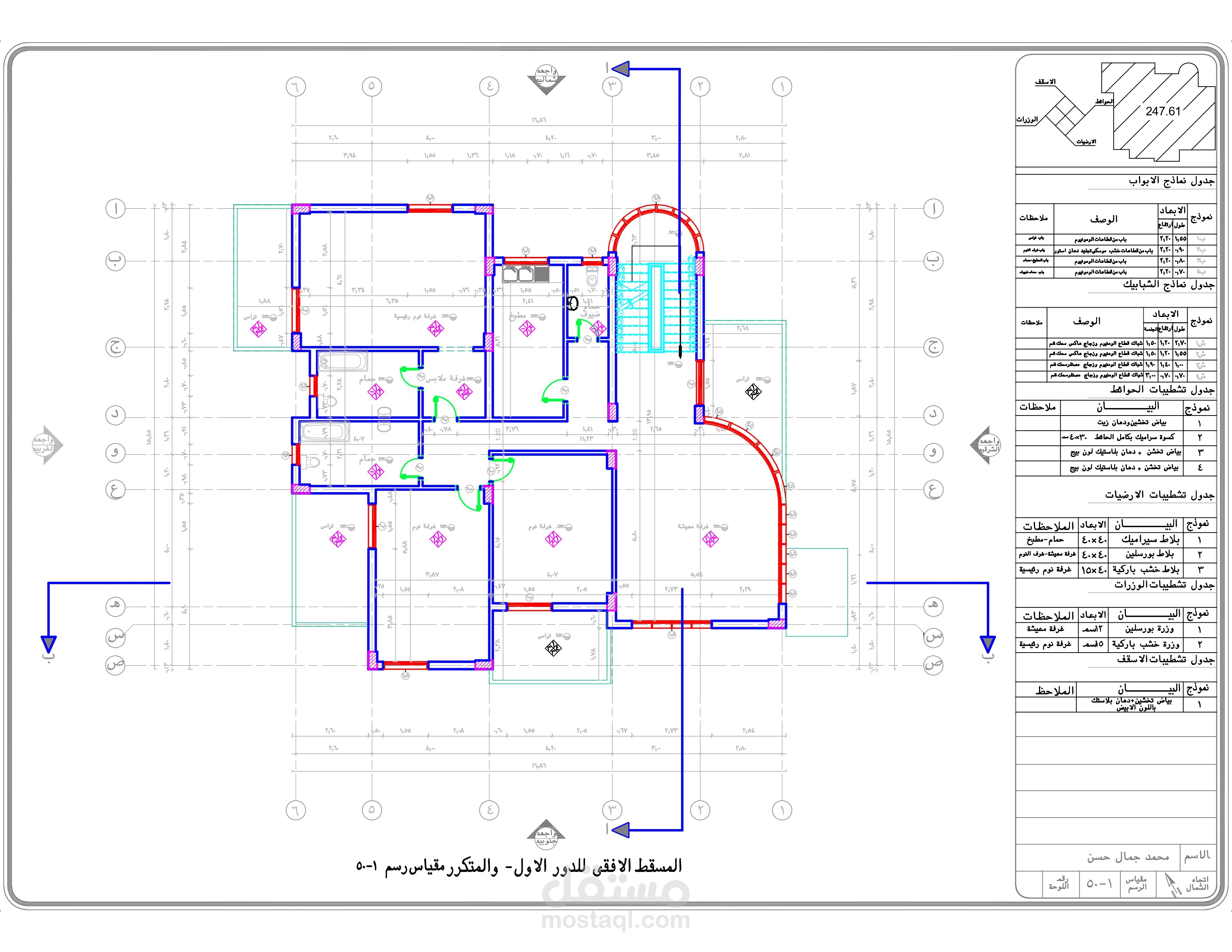 اعداد كافه الرسومات والتفاصيل التنفيذيه والانشائيه للارض والفيلا المطلوبه من العميل و ذلك من اعمال ( الكهرباء - الصرف والتغذيه - الميول - الاساسات - الاعمده )