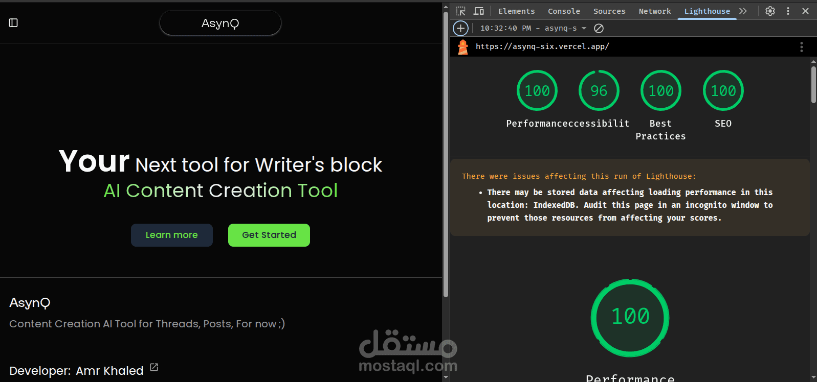 النتيجة: تطبيق ويب سريع جداً (High Performance) يحقق درجات عالية في معايير Google Lighthouse، مع كود نظيف (Clean Code) قابل للصيانة والتطوير.
