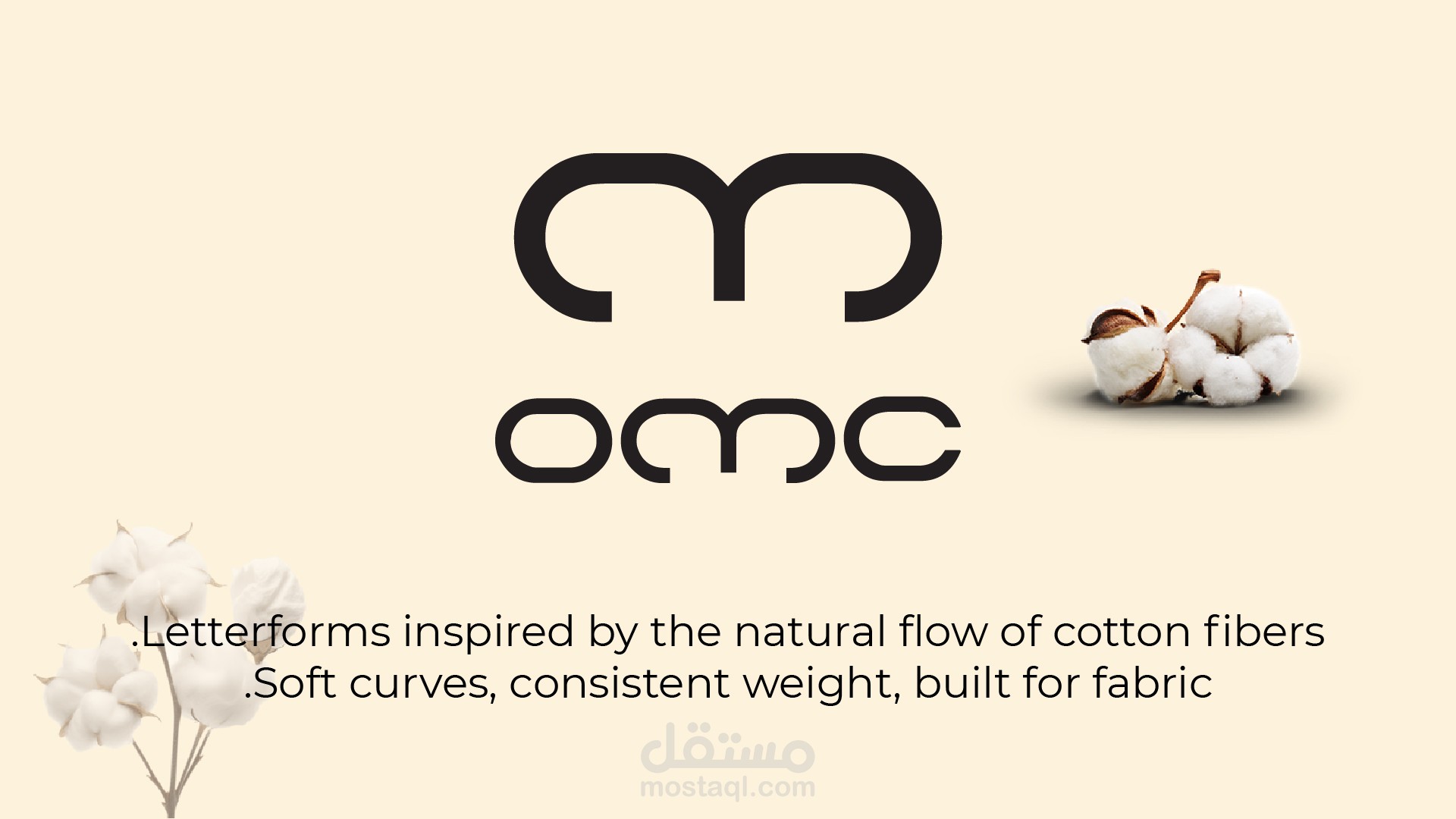 يعتمد هذا الشعار على بناء حروفي مخصص (Custom Letterforms) مستوحى من الطبيعة العضوية لألياف القطن، حيث تعكس الانحناءات الناعمة والترابط بين الحروف إحساس القماش المتماسك والمتقن الصنع.