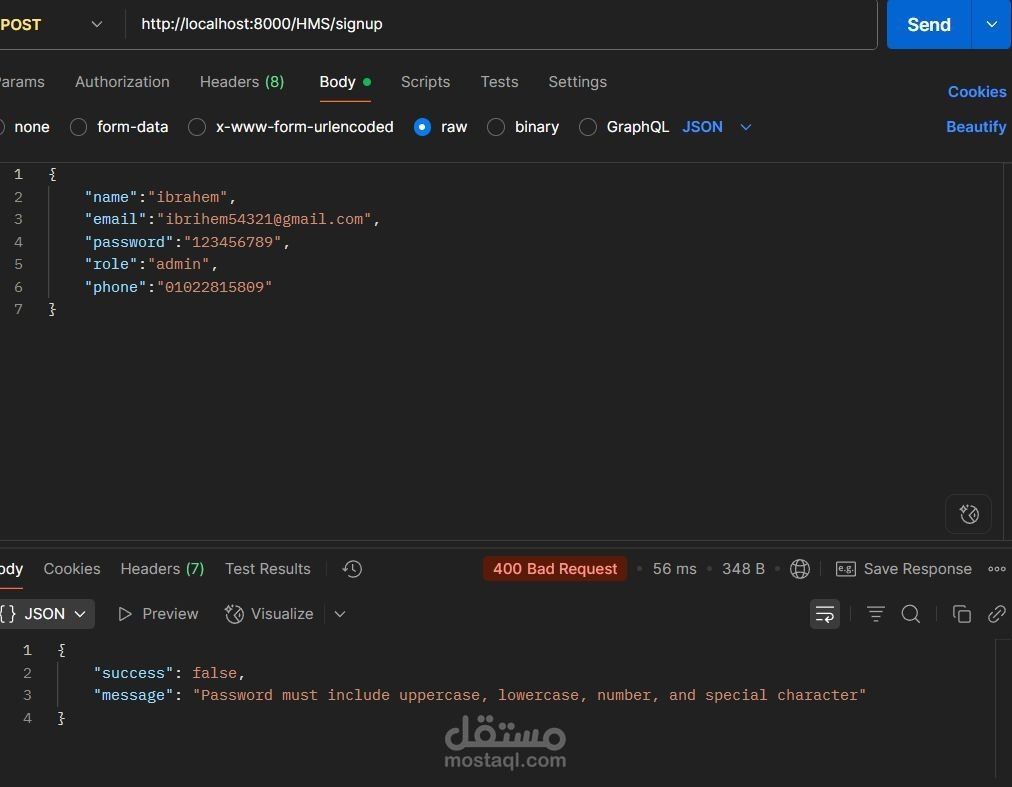 Validation كامل لكل البيانات قبل حفظها في قاعدة البيانات.