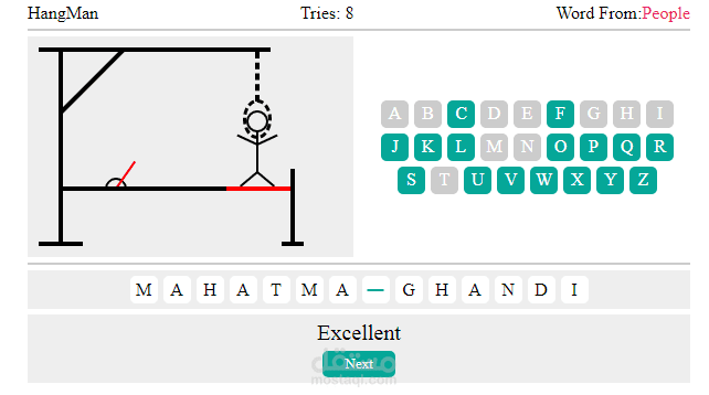 عند الانتهاء من تخمين الكلمة بنجاح، ينتقل اللاعب إلى كلمة جديدة.
