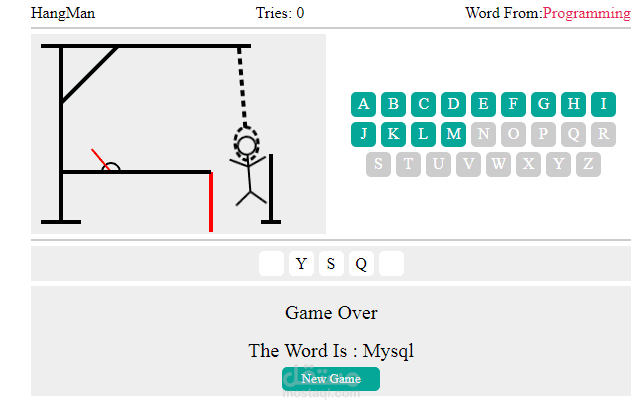 في حالة استنفاذ جميع المحاولات دون تخمين الكلمة بشكل صحيح، يتم إنهاء اللعبة وظهور شاشة النهاية وبها الكلمة الصحيحة