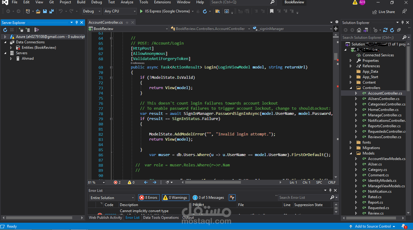 - تصميم موقع من خلال ASP.net mvc