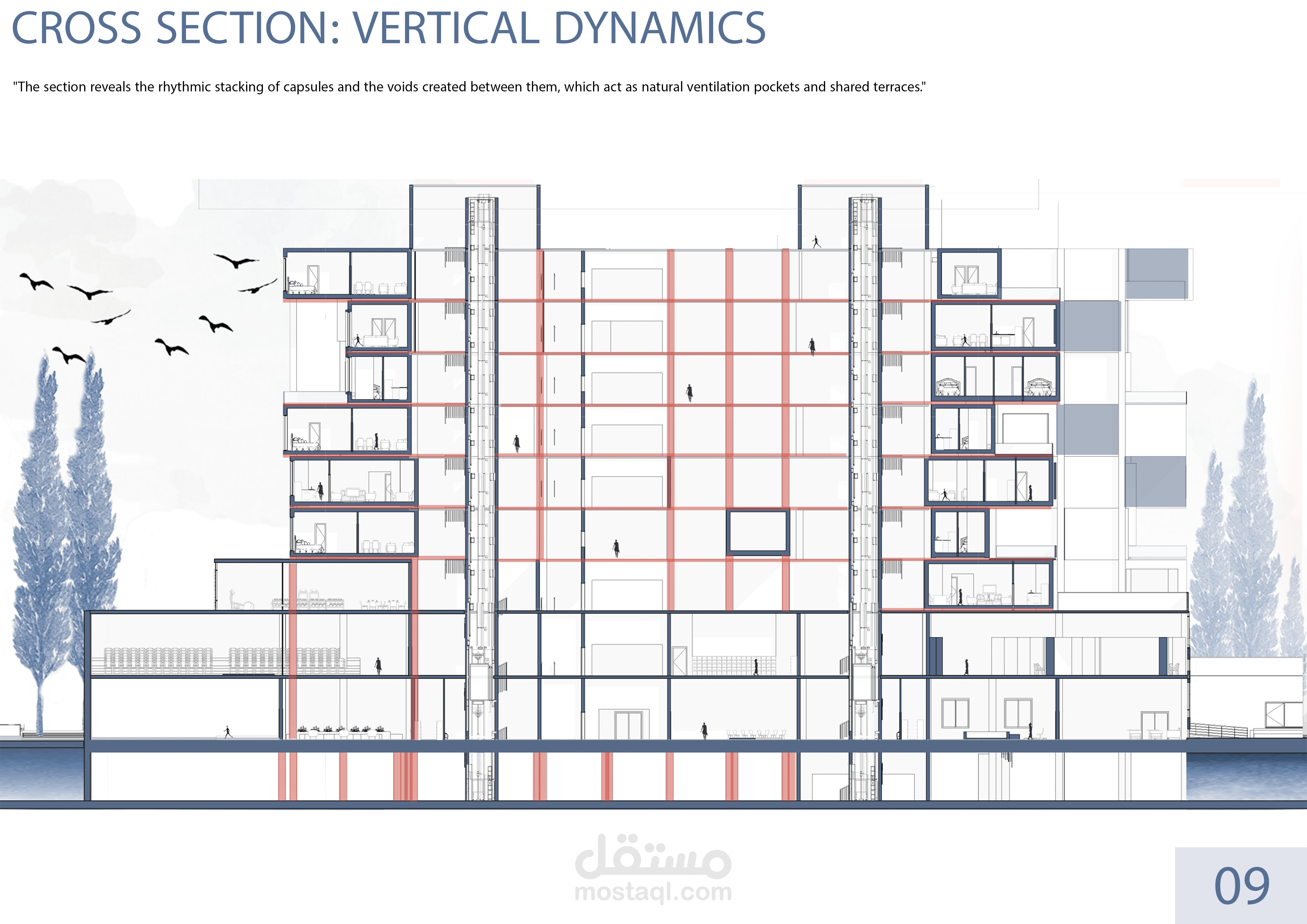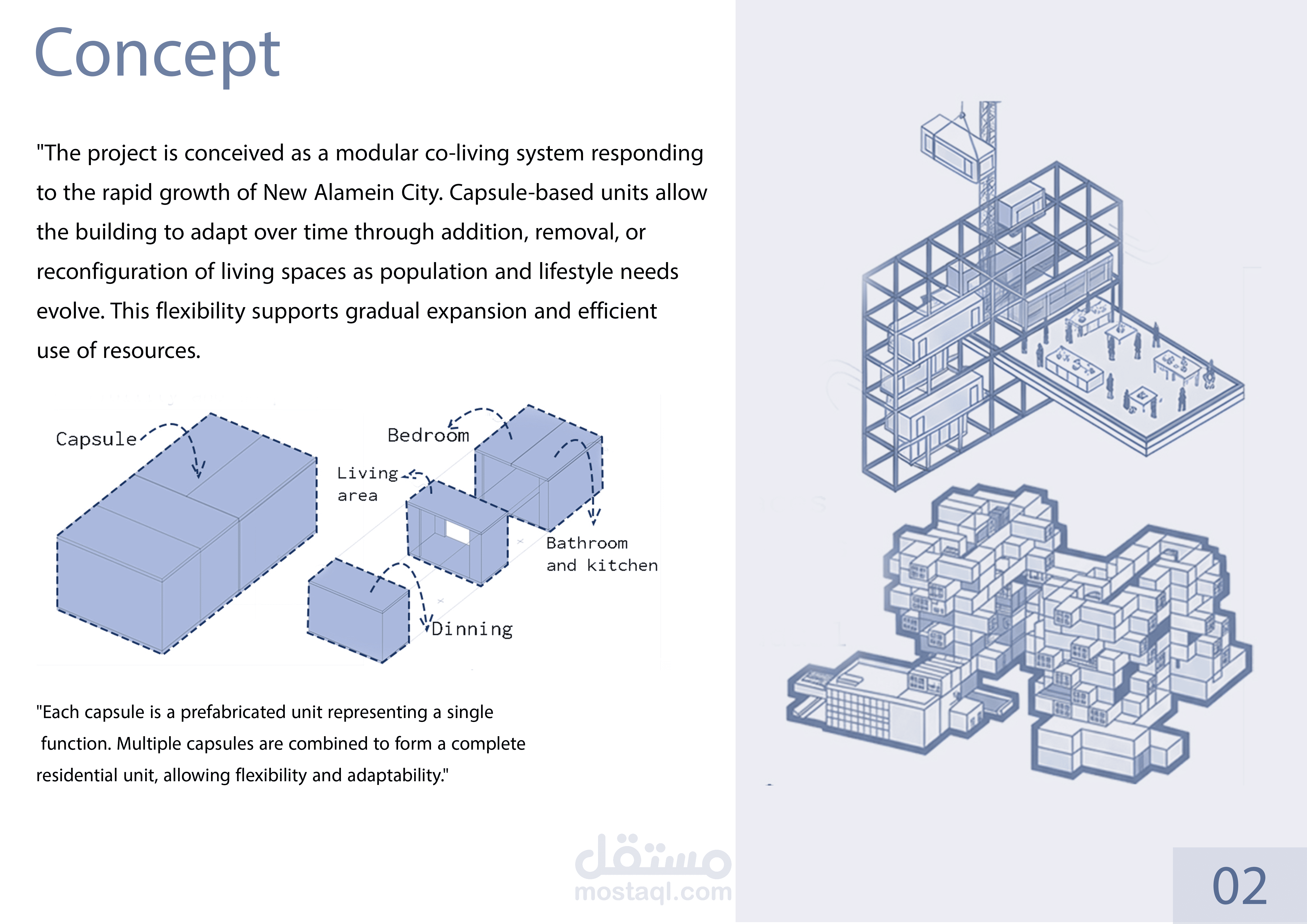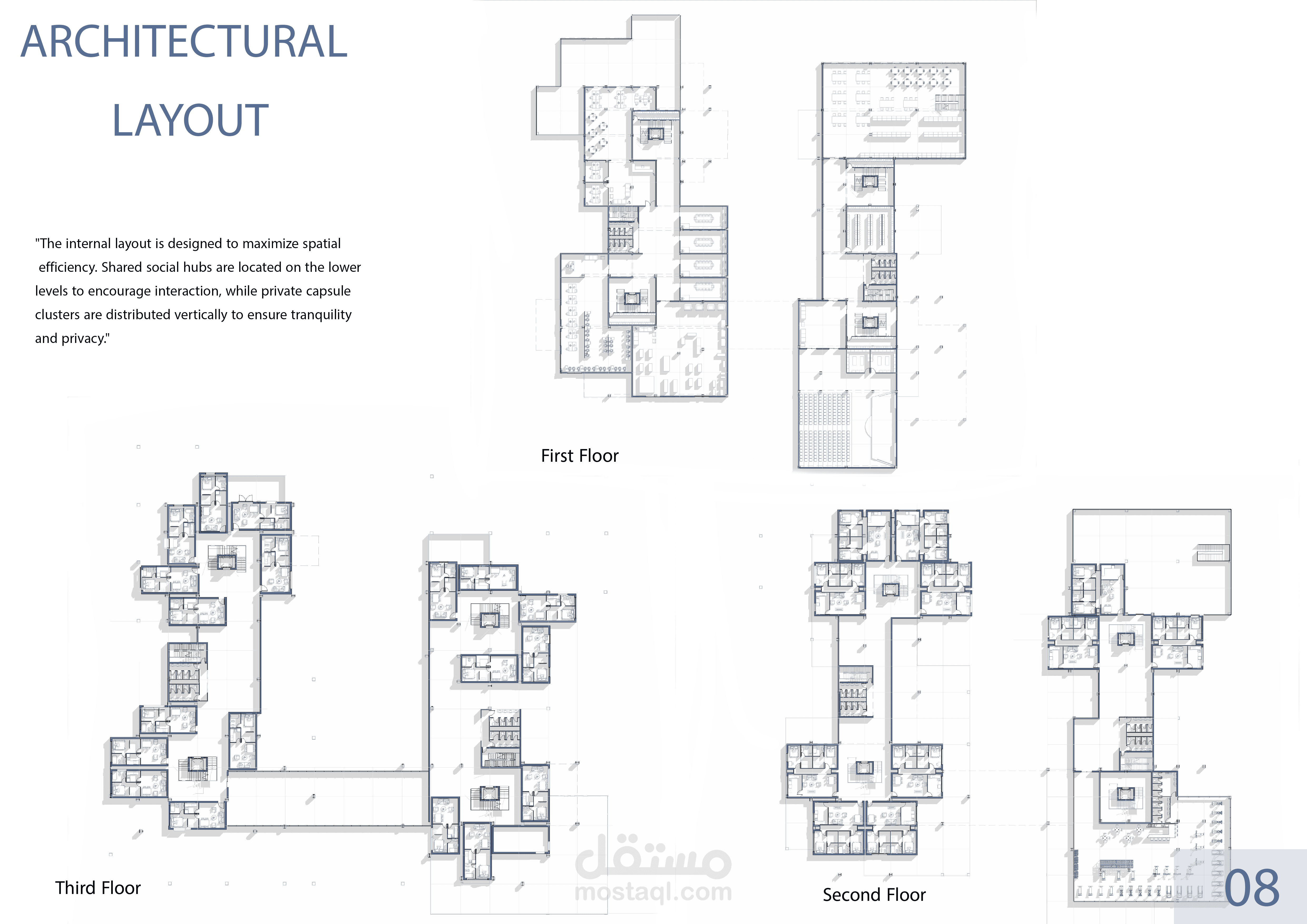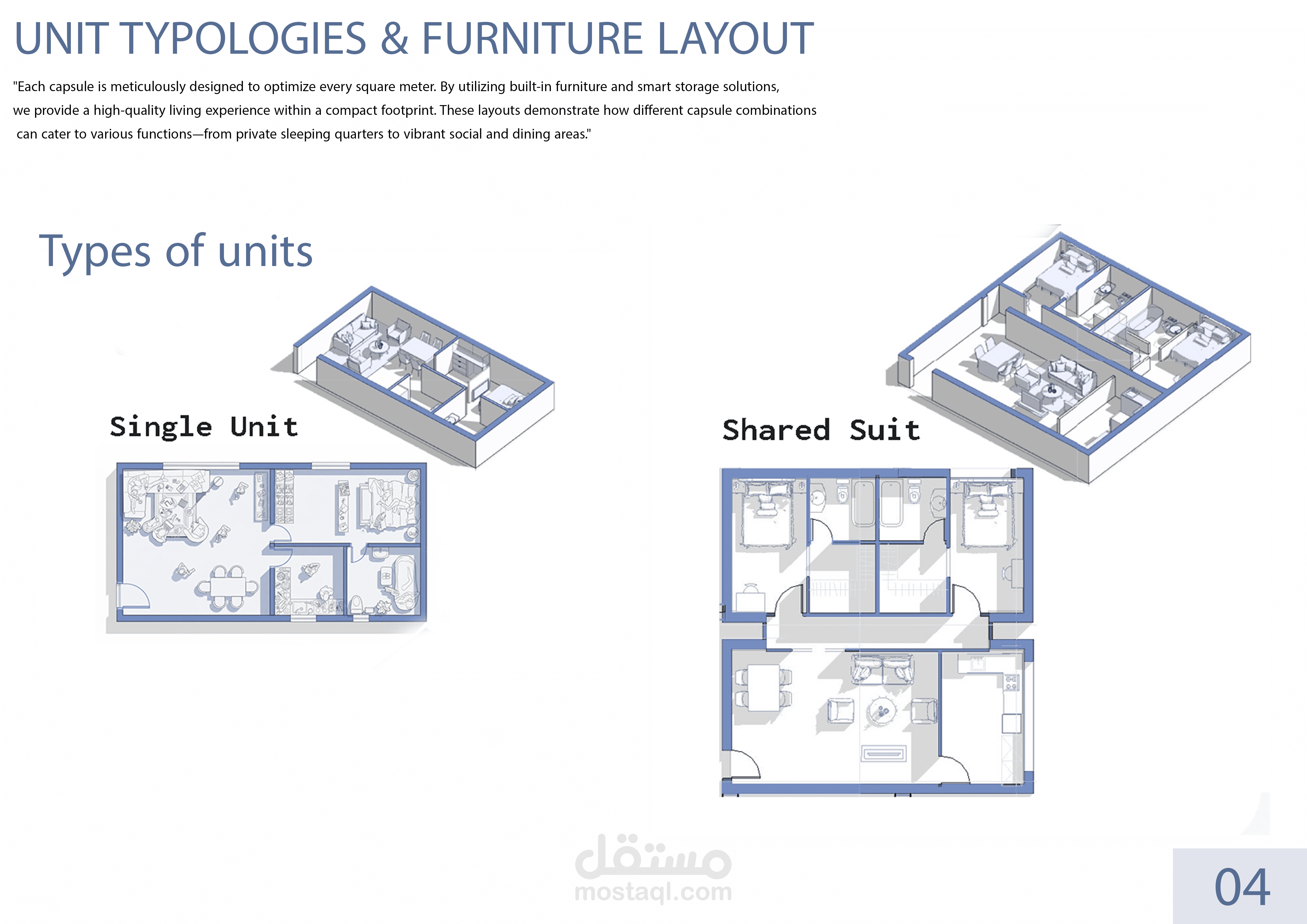 مشروع معماري يستكشف مفاهيم السكن المعاصر المشترك من خلال منهجية تصميم تعتمد على الوحدات الموديولية (Modular Design) والمرونة الفراغية.يهدف المشروع إلى خلق بيئة سكنية متوازنة تحفز على التفاعل الاجتماعي (Social Interaction) مع الحفاظ التام على الخصوصية الفردية، وذلك من خلال توظيف التنظيم الفراغي، ودراسة الإضاءة الطبيعية، واختيار المواد (Materiality) كمحركات أساسية للتصميم.