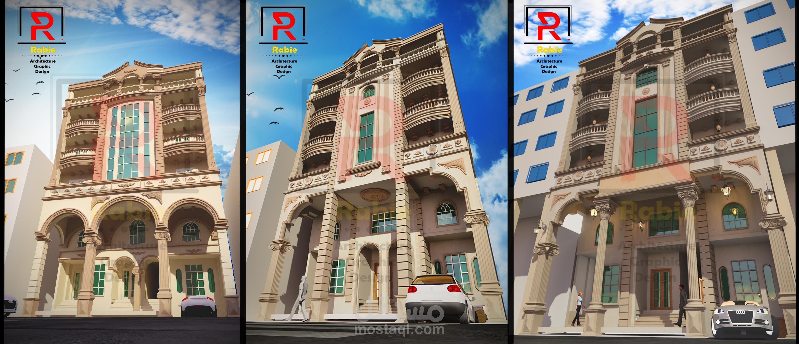 مبني سكني تجاري علي الطراز الكلاسيك في مدينة دمياط الجديدة .. مكون من دور ارضي تجاري + دور ميزانين + 4 ادوار سكني