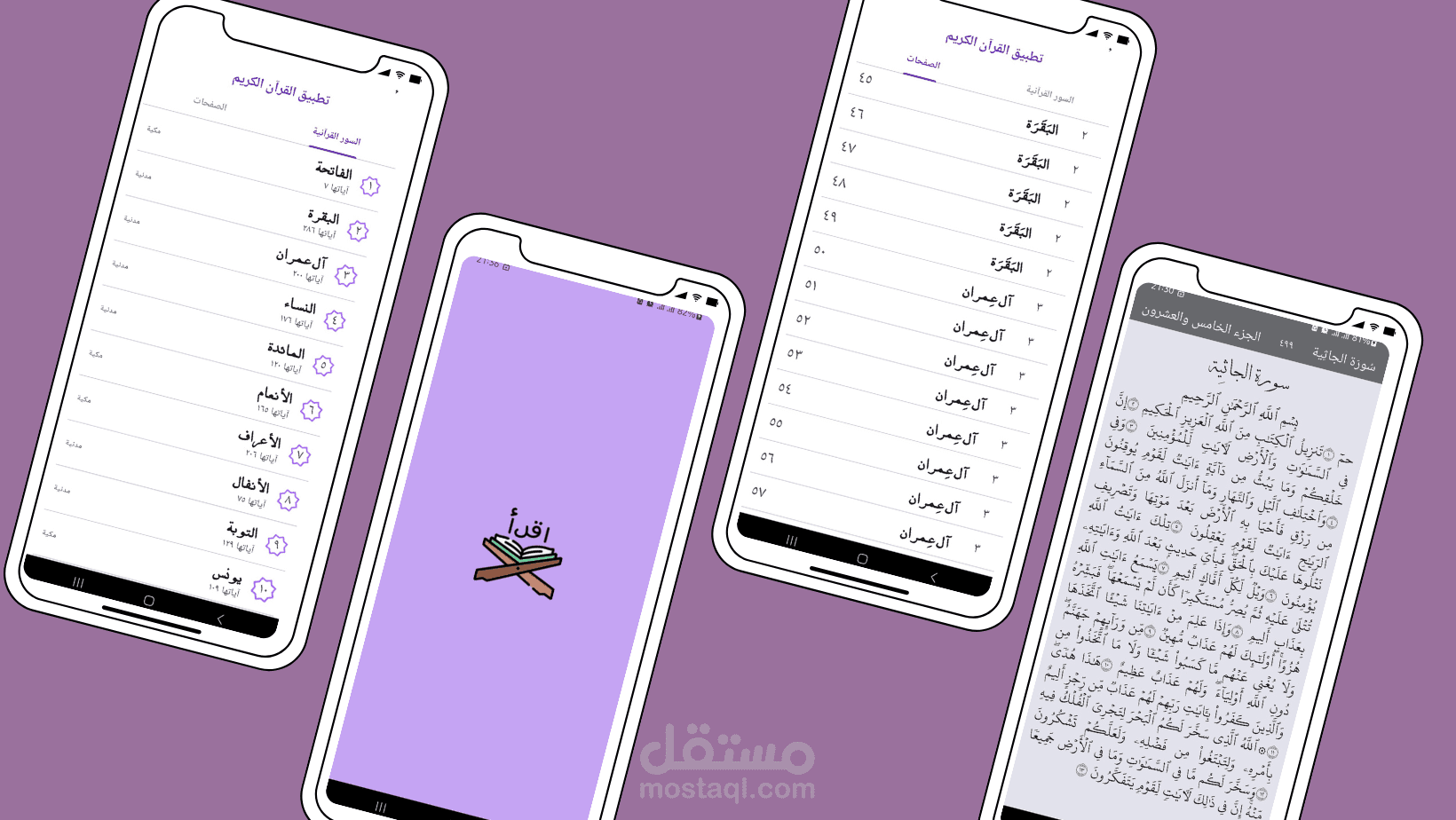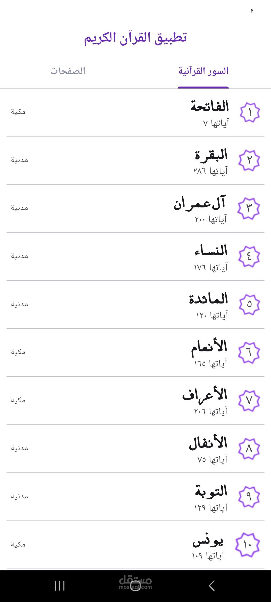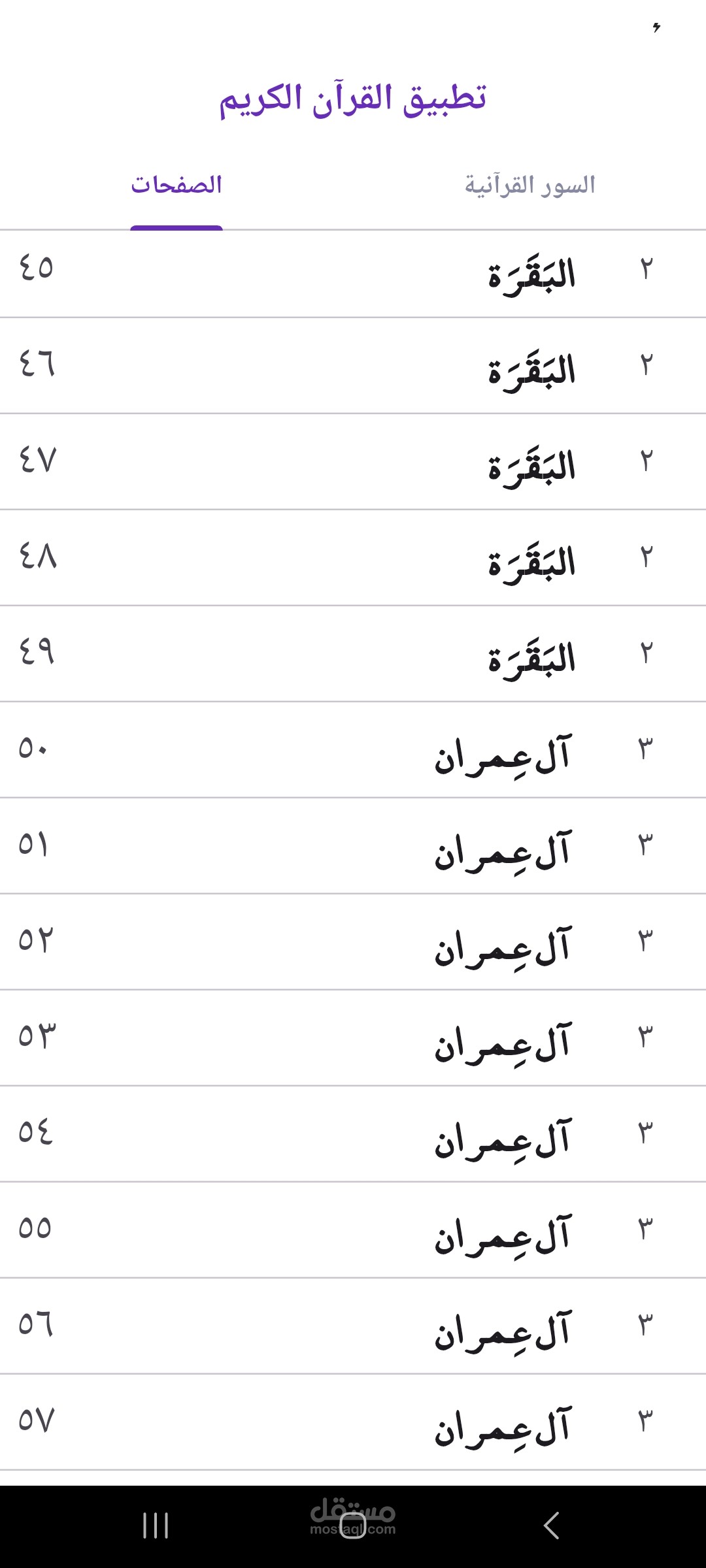 A Holy Quran mobile application developed using Flutter, designed to provide an easy and smooth reading experience. The app allows users to browse Quran pages and Surahs with clear Arabic text and simple navigation.