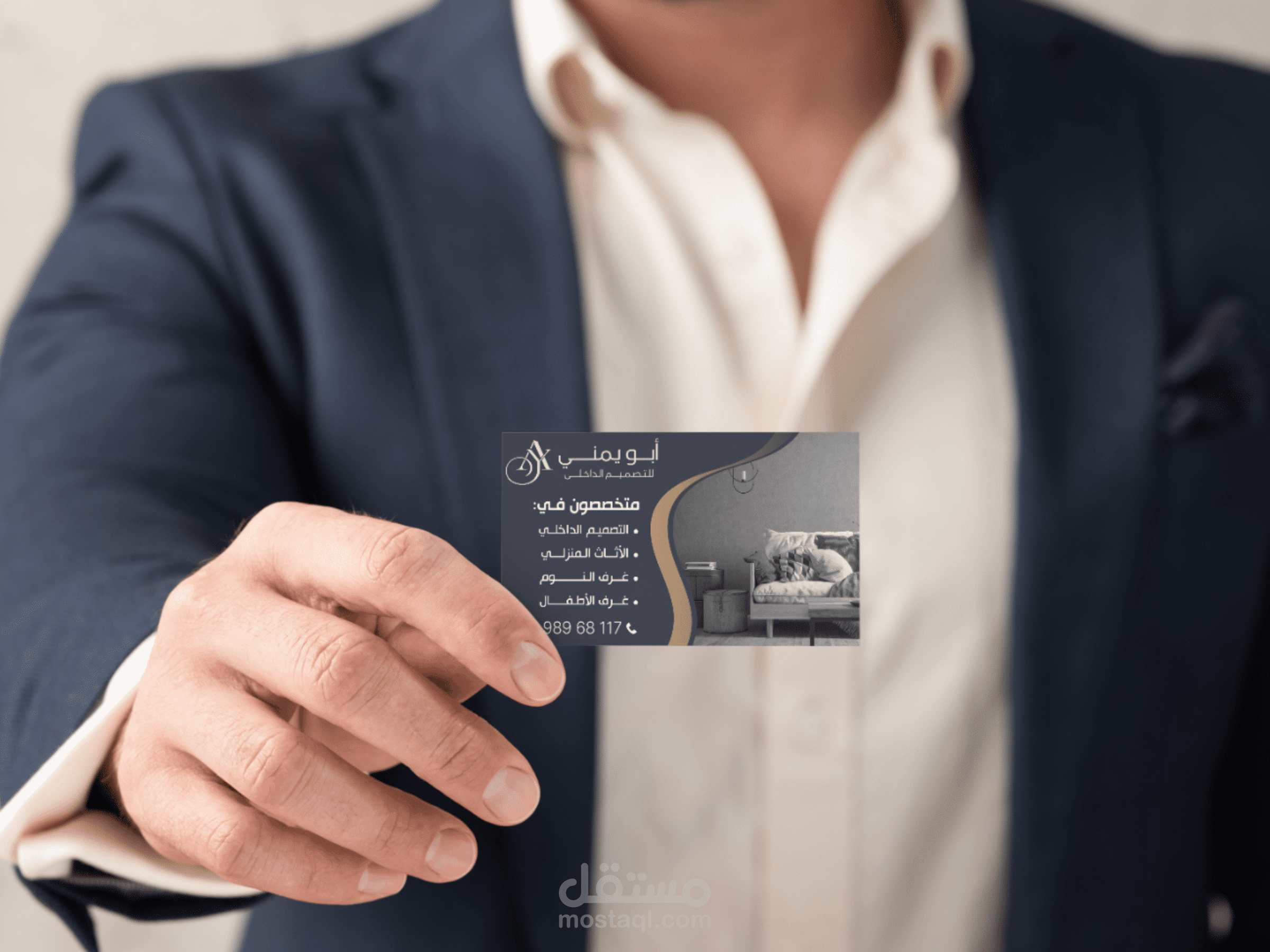 تم تنفيذ تصميم كارت شخصي (Business Card) بأسلوب احترافي يعكس هوية العلامة التجارية ويظهر البيانات بشكل واضح ومنظم.