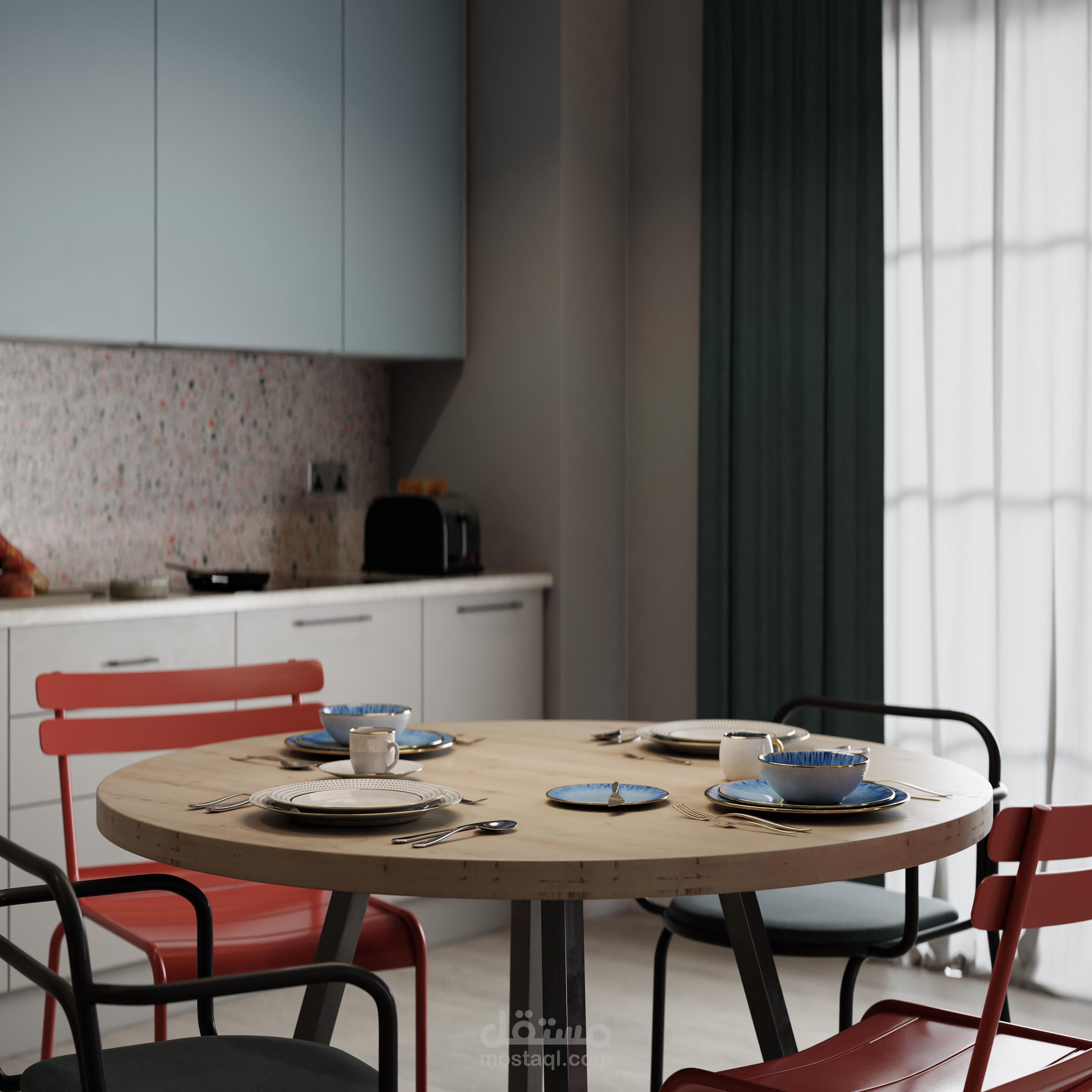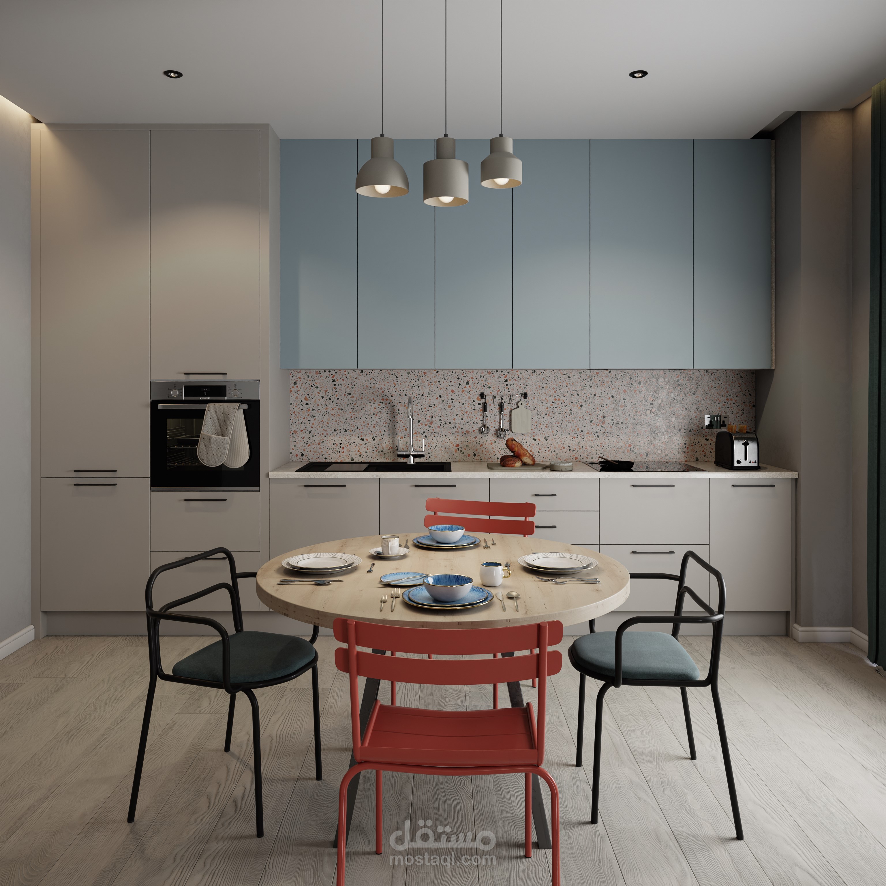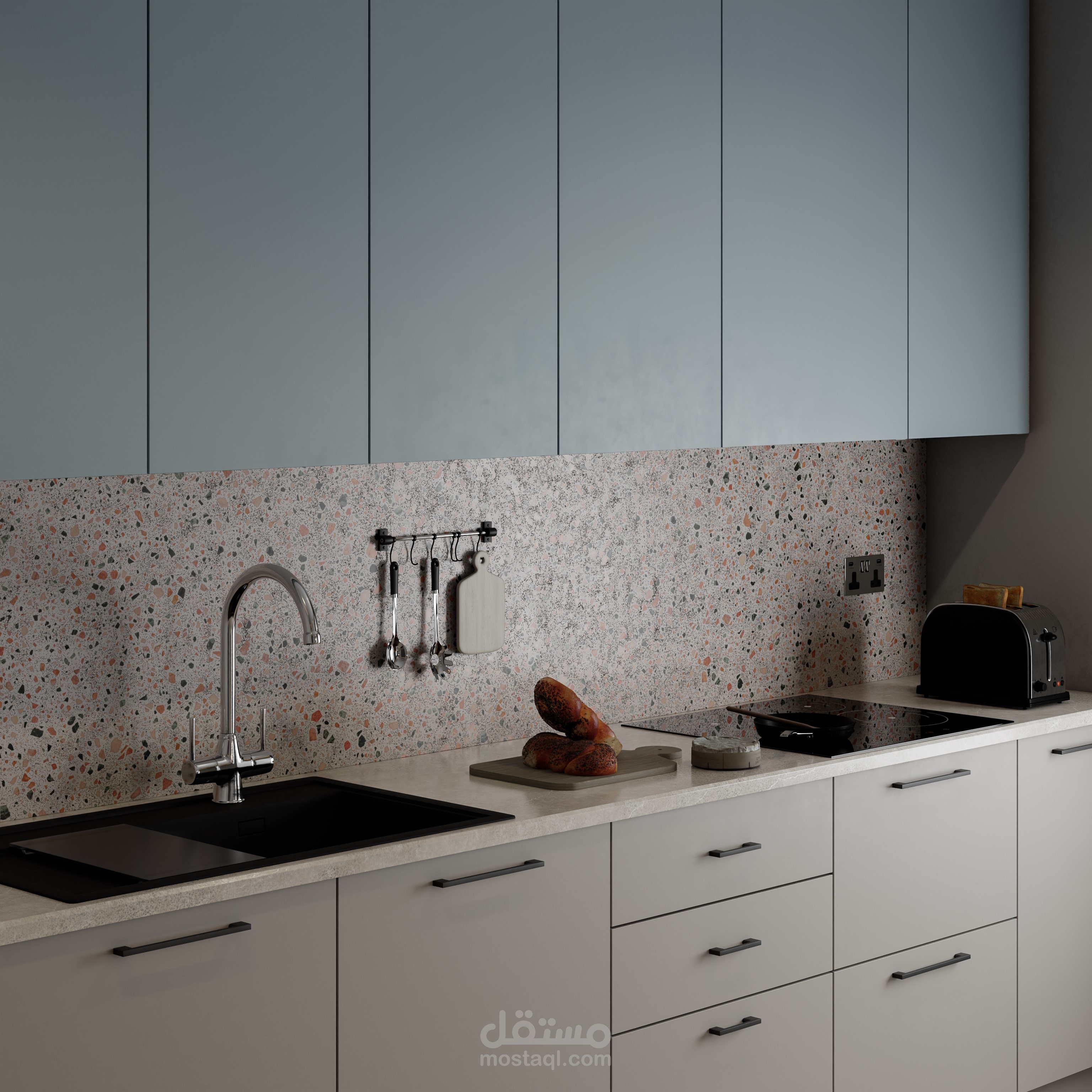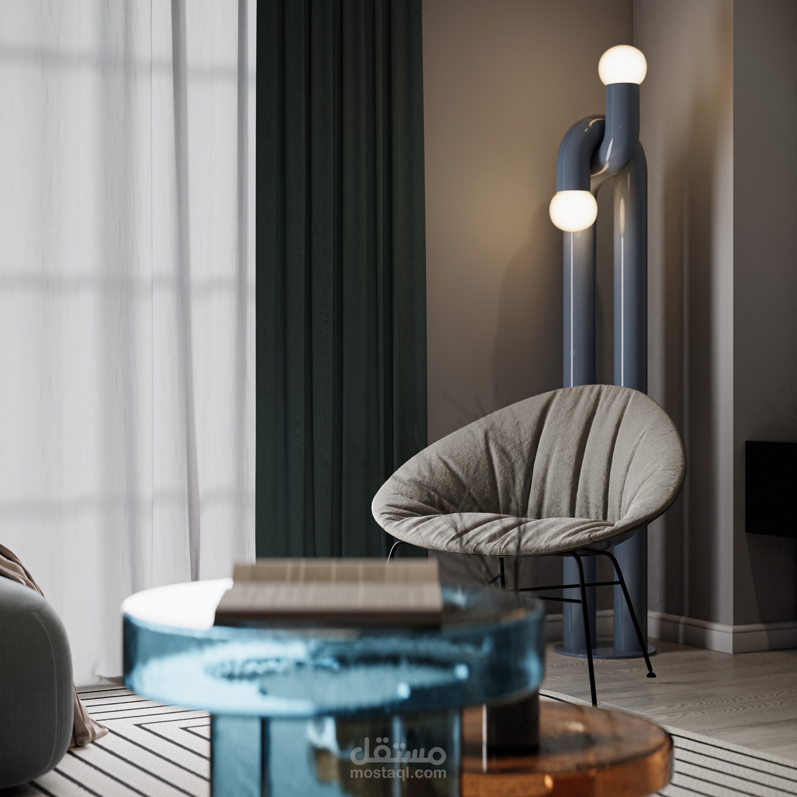 Guided by simplicity, this open-plan living and kitchen design focuses on balance, functionality, and subtle visual richness. Soft colors and refined patterns create a calm, contemporary space that feels both practical and welcoming.